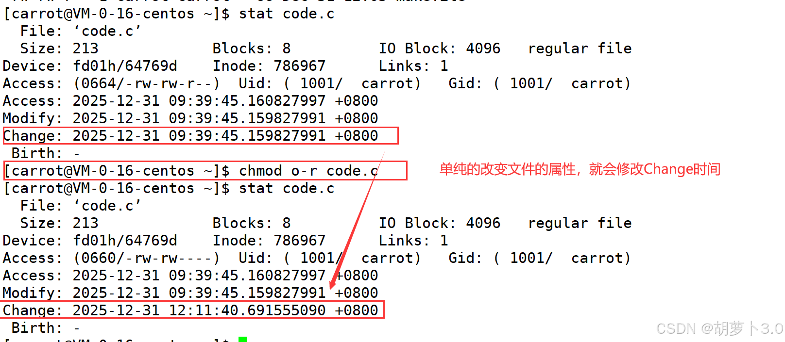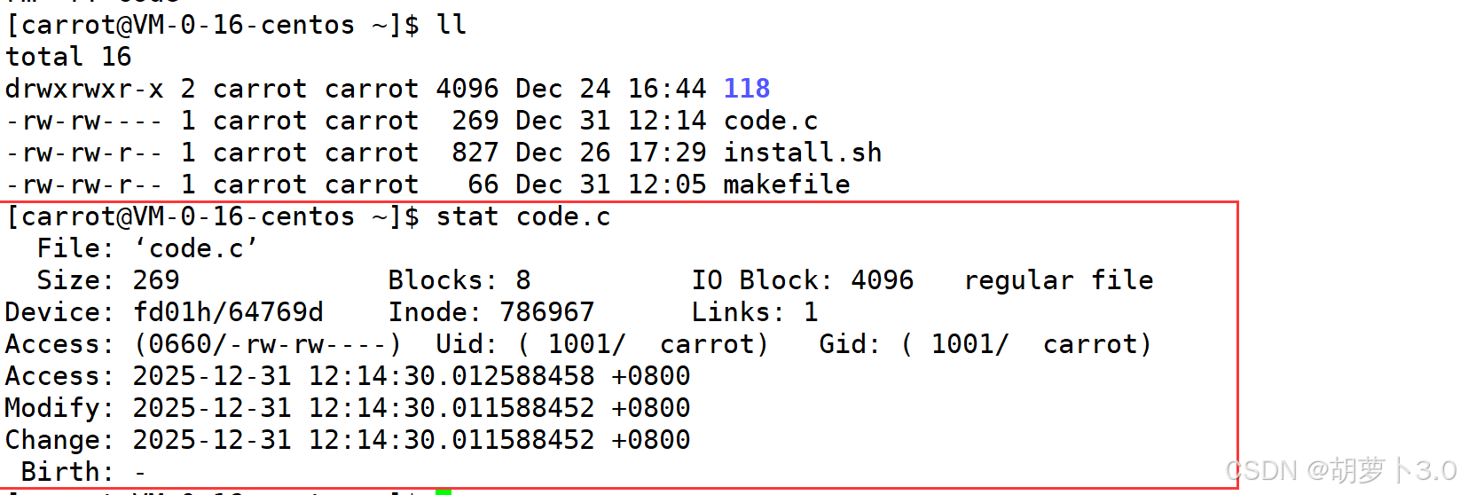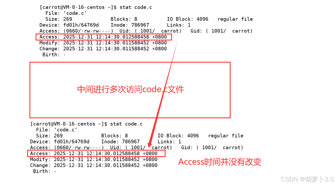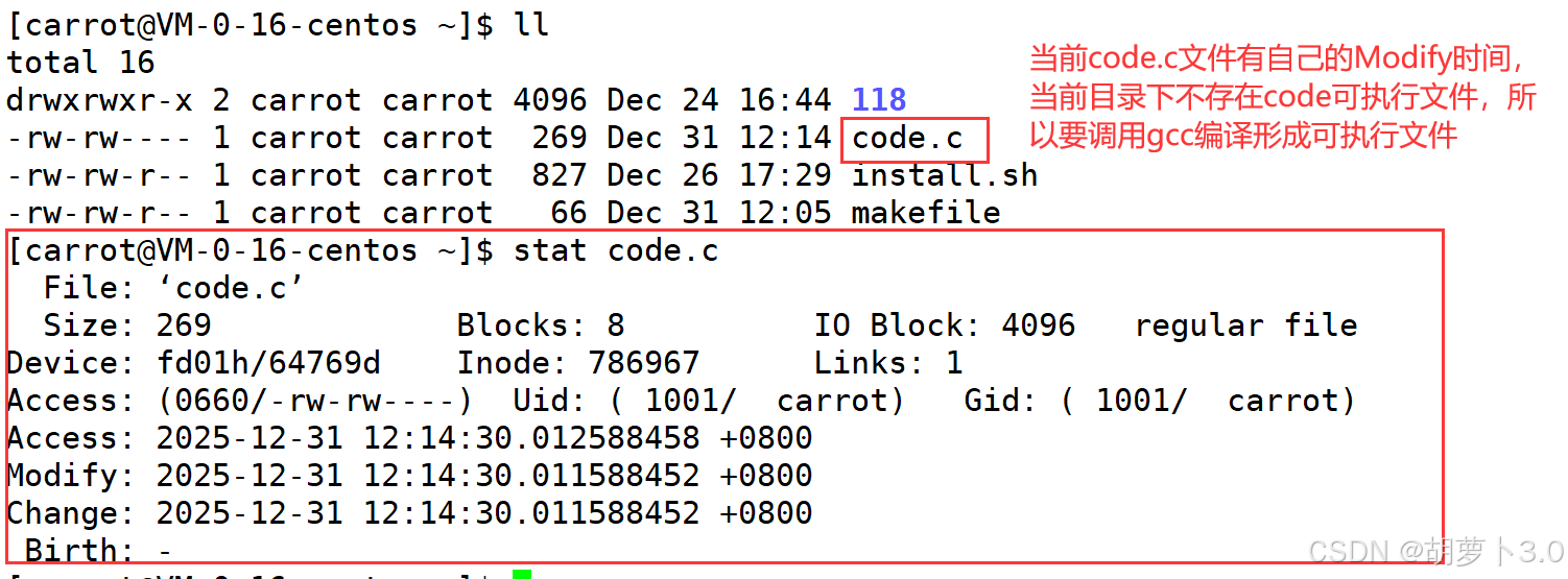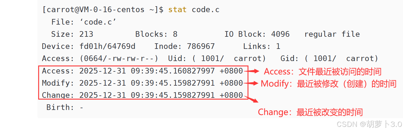 [carrot@VM-0-16-centos ~]$ stat code.c