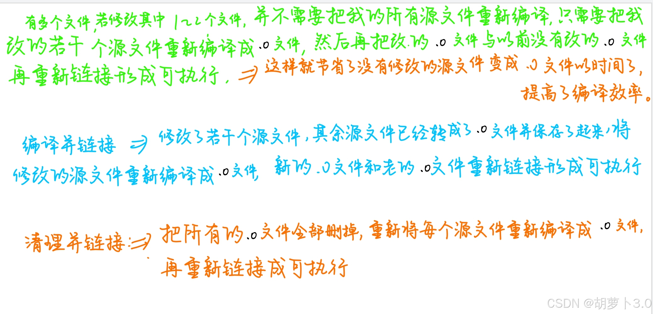 **最佳实践:**先将源文件编成 .o 文件,然后再把 .o 文件链接成 可执行文件