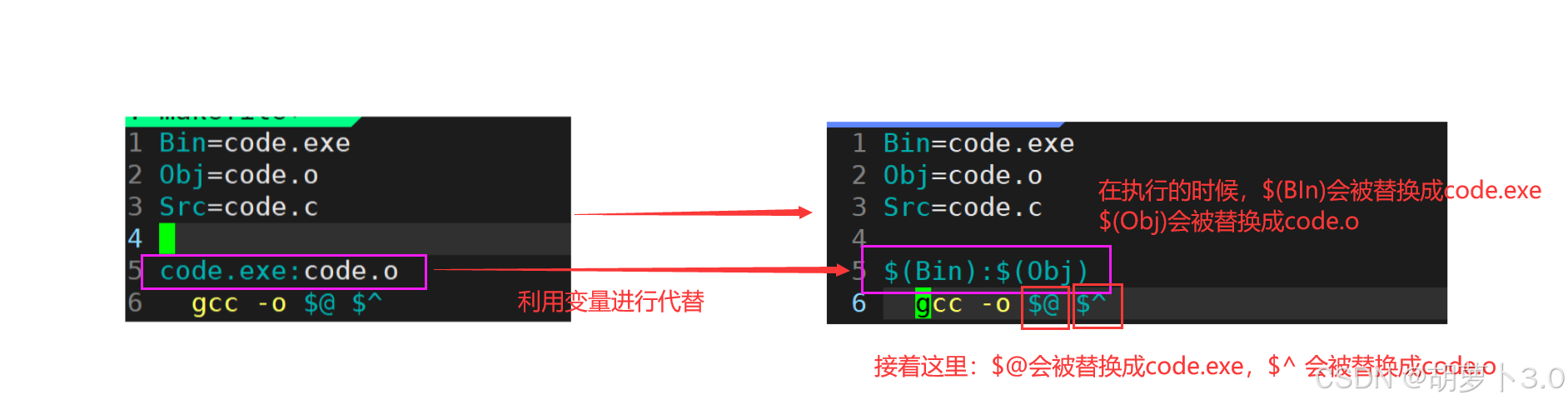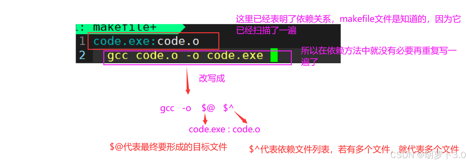 $@:代表目标文件名(code.exe) -