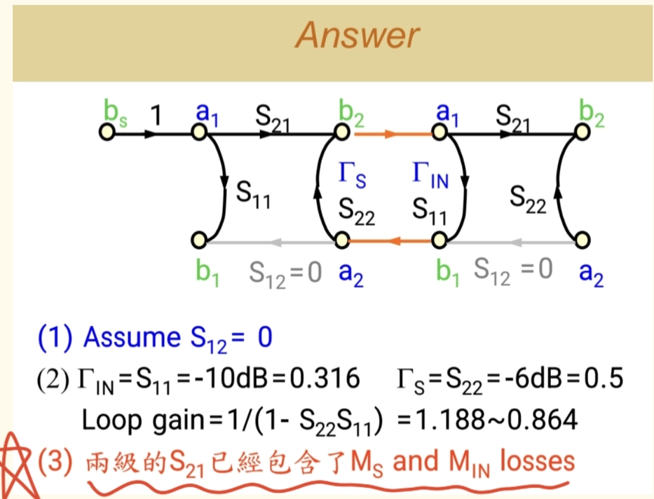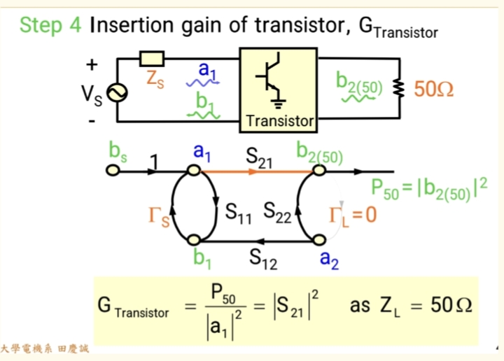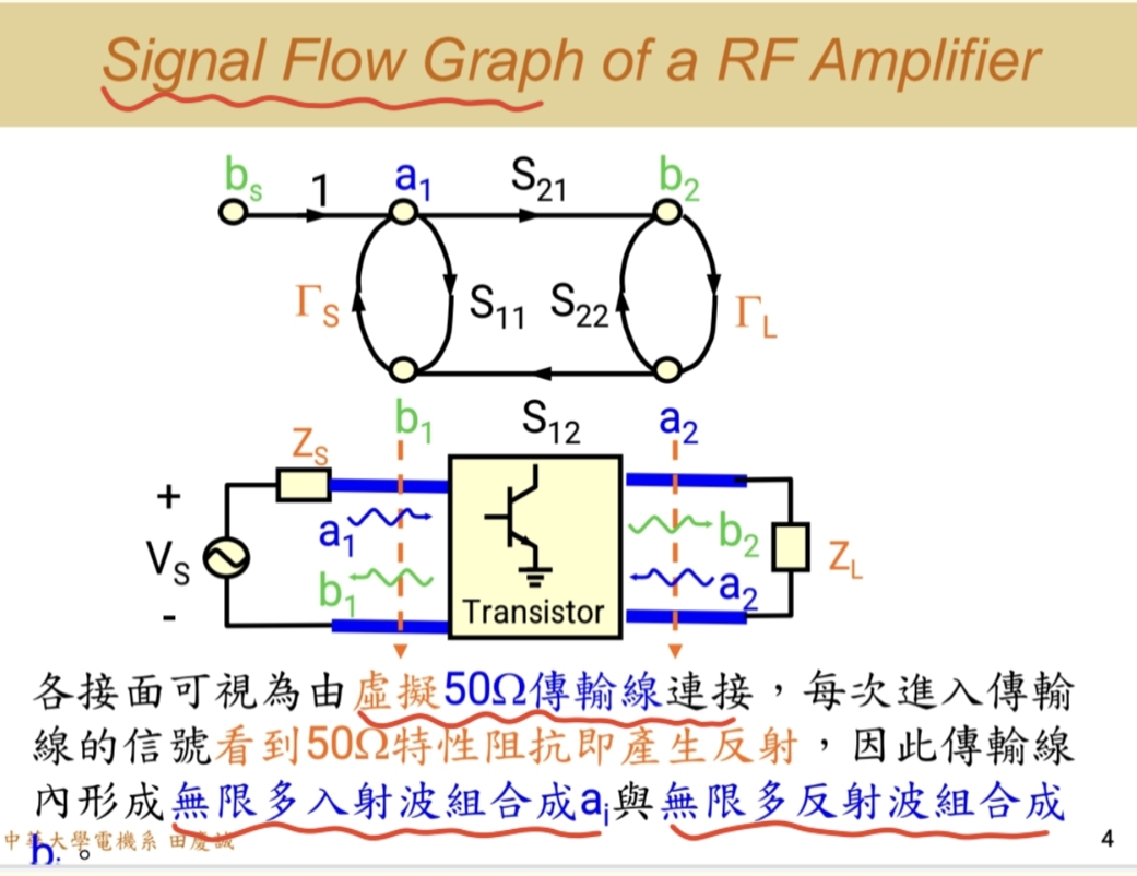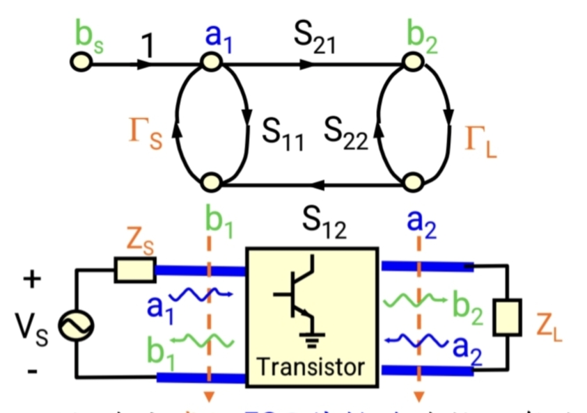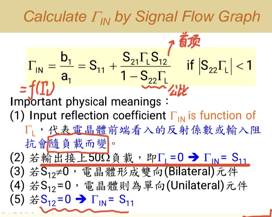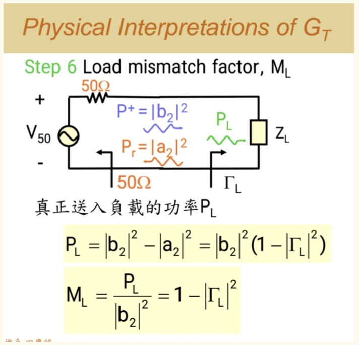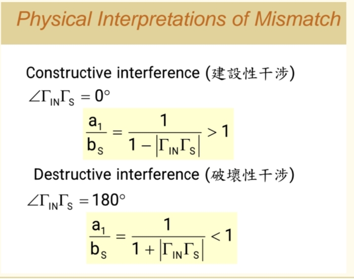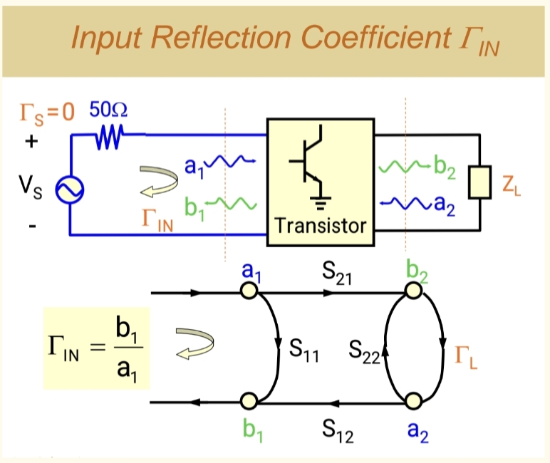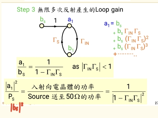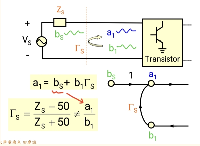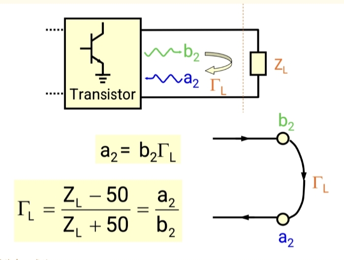 - 从系统(晶体管)反射回来的波 b1b₁b1,碰到源端后,再次被反射进系统,形成 ΓSb1Γ_S b₁ΓSb1。
