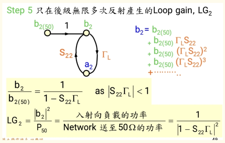 而通过信号流图不难看出,在a2a_2a2节点时,信号可以绕一圈,甚至绕几圈回路才回去,每次绕行负载回路时,都会额外引入回路增益(公比):