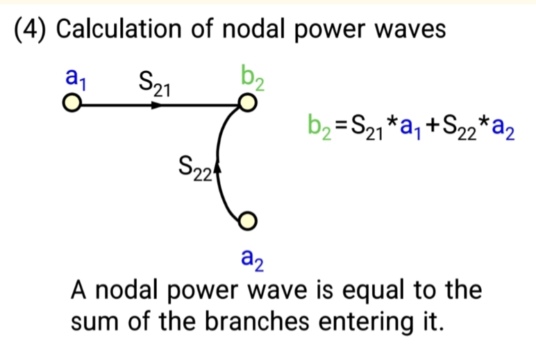 核心法则 :进入一个节点的功率波,等于所有指向该节点的支路 的(来源节点功率波 × 支路系数)之和。