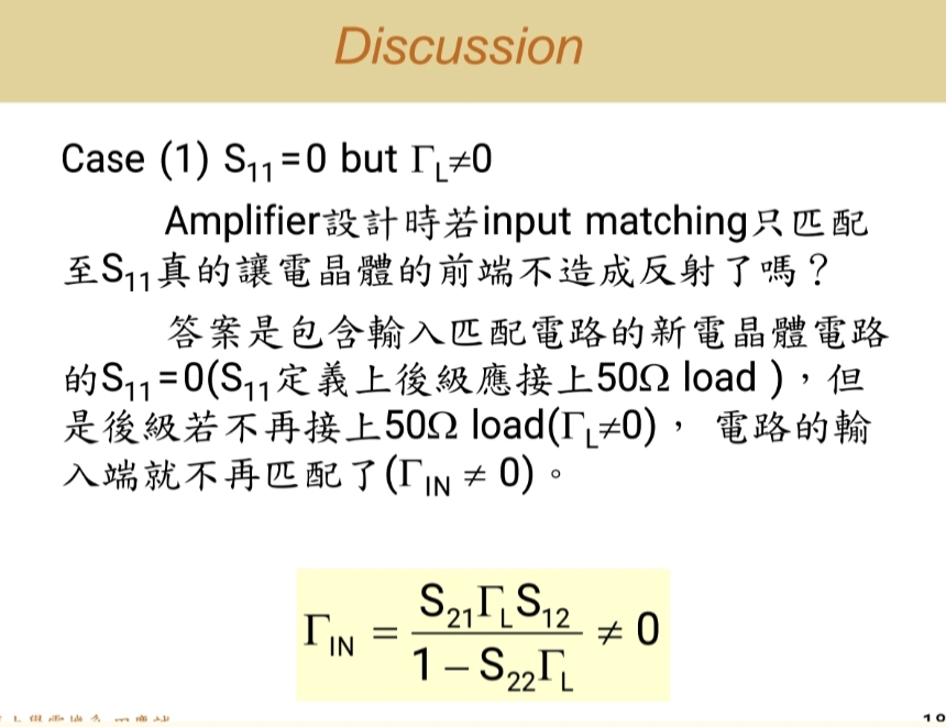 此时前级匹配S11S_{11}S11=0不受后级负载变化影响,ΓinΓ_{in}Γin恒为0。实际设计中需验证S12S_{12}S12是否可忽略以简化匹配。