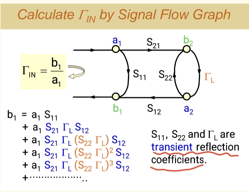 b1b_1b1:从信号流图中我们可以清晰的看出,从共有两个来源,一是直接反射S11S_{11}S11(直接反射项),二是经过负载多次反射后返回的叠加信号 。