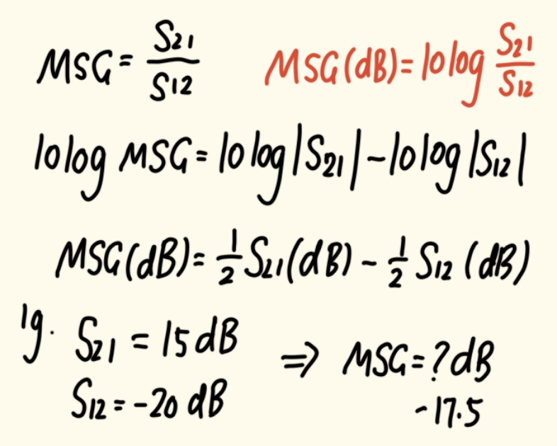 MSG=∣S21∣∣S12∣MSG = \\frac{\|S_{21}\|}{\|S_{12}\|}MSG=∣S12∣∣S21∣