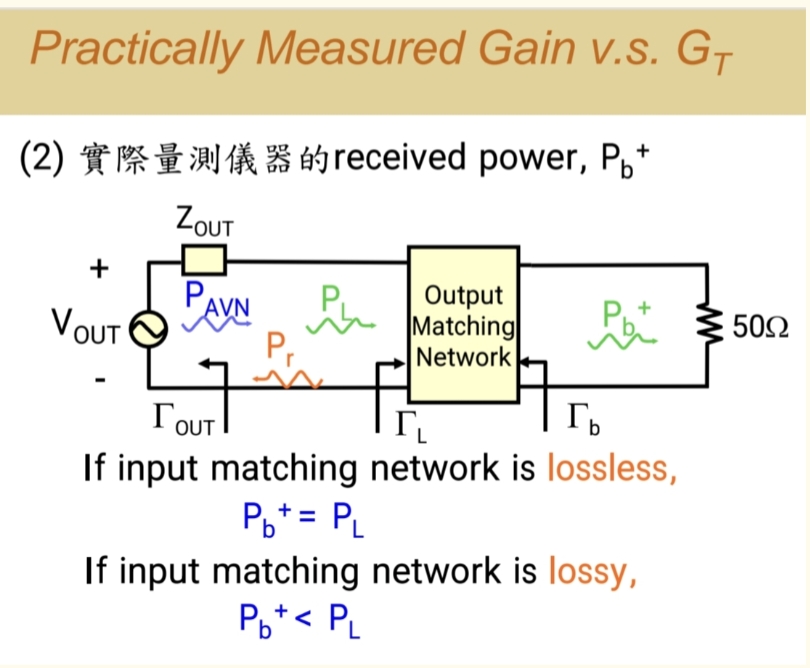 我们明白了增益有多种定义,而(GTG_TGT)是核心,它描述了功率传输的完整链条,而这个链条的本质是一系列M因子的串联 ,这也能够通过我们整个推导过程中能体现出来。而出于不同的设计目的,我们学习新的功率增益来利用,比如设计lna,我们前级匹配电路 并非寻找共轭入射系数,而是寻找最小化噪声的反射系数,于此同时,后级匹配电路 则是设计为完美匹配,于是我们学习新的功率增益GAG_AGA。