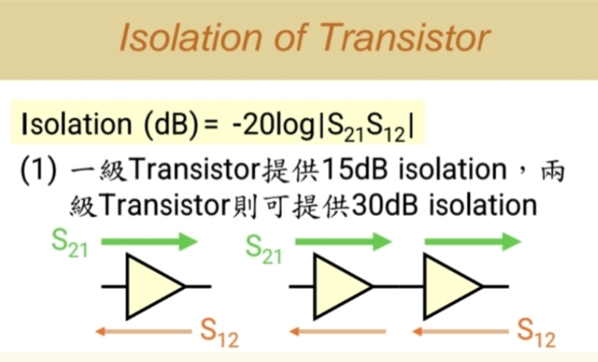 - 目标 :通过复杂的外部电路(如无损反馈、输入输出匹配),人为地将一个非单向性晶体管(S12≠0S₁₂ ≠ 0S12=0)改造为"理想单向"器件。改造目标是使其 S11=0,S22=0,S12=0S₁₁ = 0, S₂₂ = 0, S₁₂ = 0S11=0,S22=0,S12=0 ,只剩下 S21S₂₁S21。