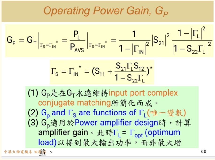 第一项是输入匹配网络的增益,第三项是输出匹配网络的增益,中间是晶体管的本征增益。 - 最大增益 :当ΓS=S11Γ_S = S₁₁ΓS=S11*且ΓL=S22Γ_L = S₂₂ΓL=S22*时,GTUG_{TU}GTU达到最大。