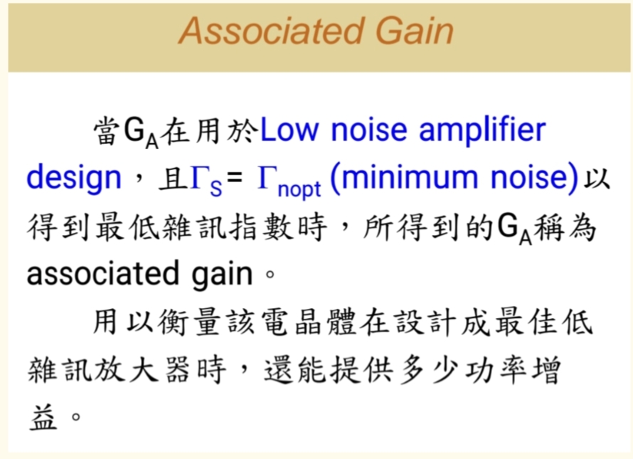 当用于设计lna的时候,GAG_AGA又被称为associated gain