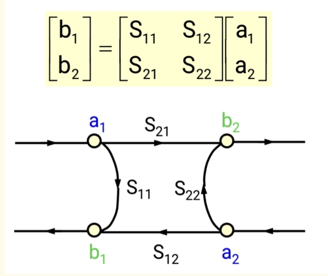 - b2=S21a1+S22a2b₂ = S₂₁ a₁ + S₂₂ a₂b2=S21a1+S22a2
