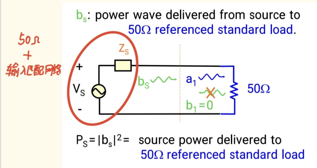 我们定义一个量 bSb_SbS 。它的物理意义是:当源端完美匹配(没有反射)时,源能够发送到50Ω传输线中的入射波 。