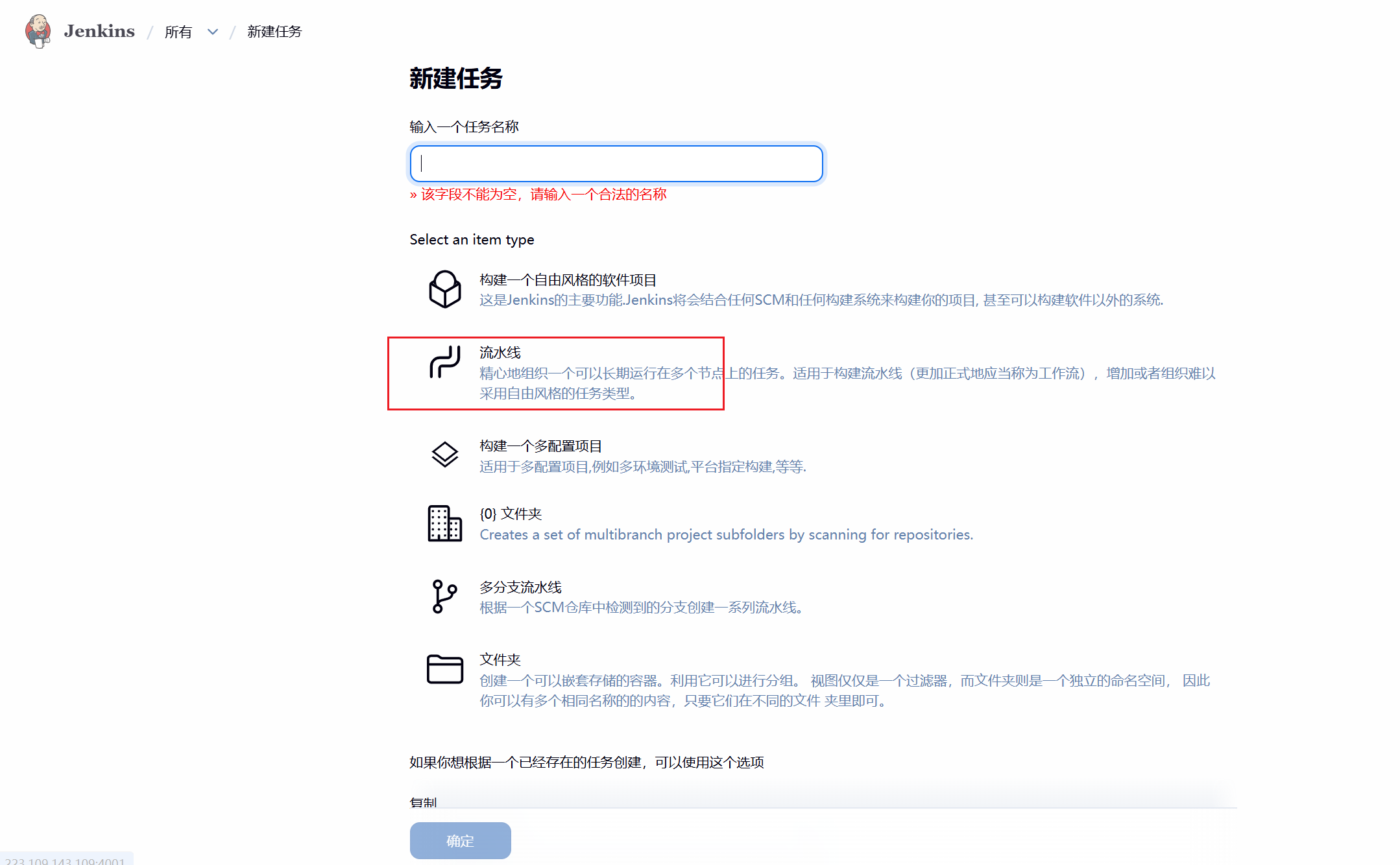 新建任务(job),构建流水线。