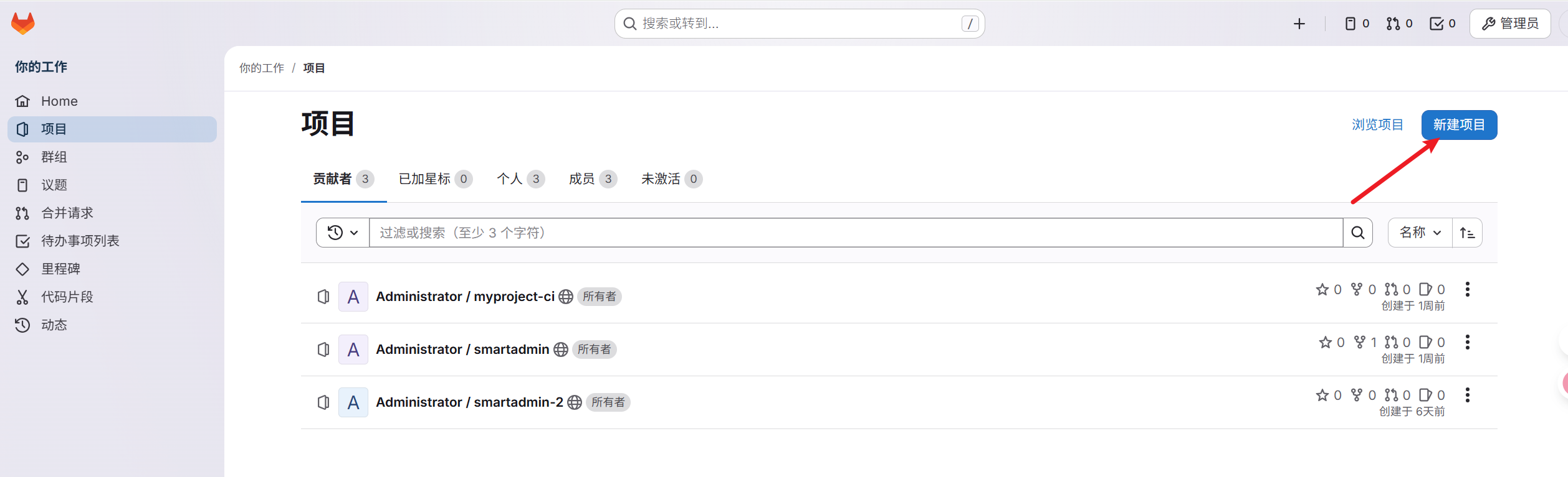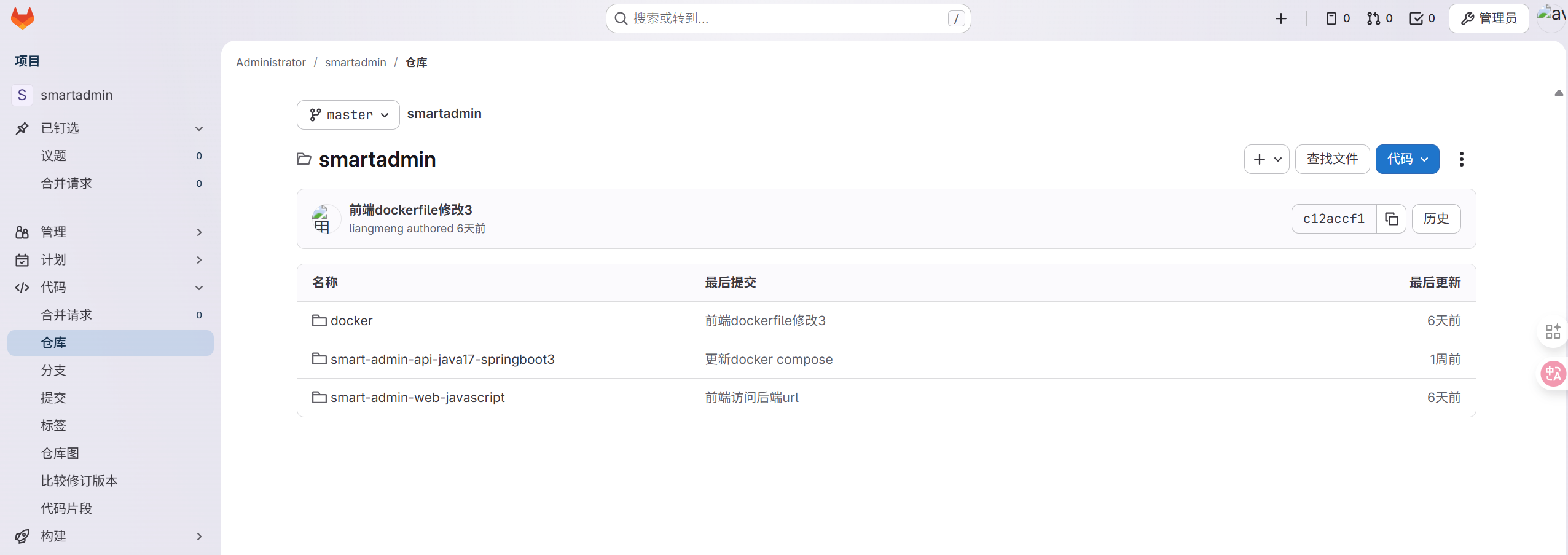 项目代码提交后,gitlab如图所示: