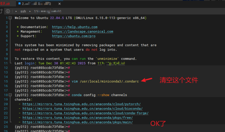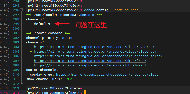 ssh远程连接服务器,进入后台,创建conda的虚拟环境,报超时问题,于是更换conda镜像源,操作如下: