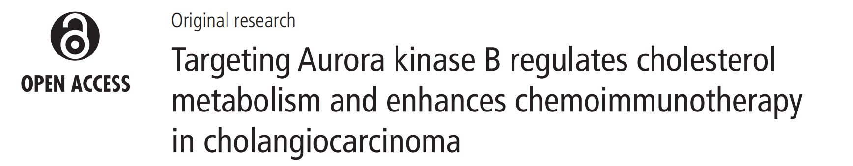 该研究于 2025 年发表在国际知名期刊《Gut》(doi: 10.1136/gutjnl-2025-335291),由华中科技大学同济医学院附属同济医院肝脏外科中心、湖北省肝胆胰疾病重点实验室及器官移植教育部重点实验室等单位联合完成,研究题目为 "Targeting Aurora kinase B regulates cholesterol metabolism and enhances chemo-immunotherapy in cholangiocarcinoma"(靶向 Aurora 激酶 B 调控胆固醇代谢并增强胆管癌化疗免疫治疗效果)。该期刊在胃肠病学与肝脏病学领域具有极高影响力,研究成果为胆管癌的靶向治疗及联合治疗策略提供了重要理论依据与实验支撑。