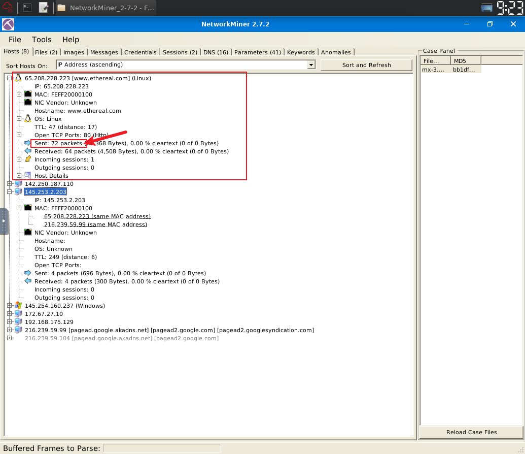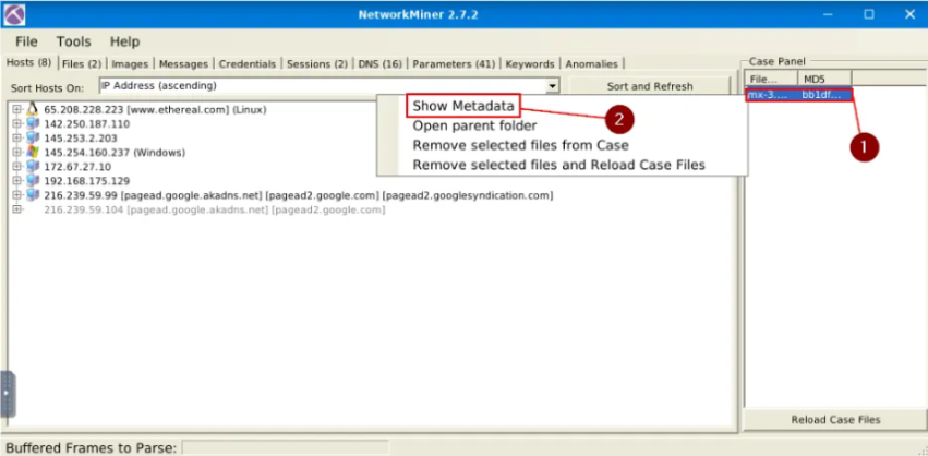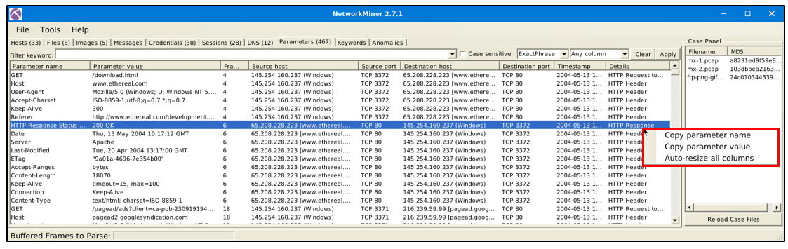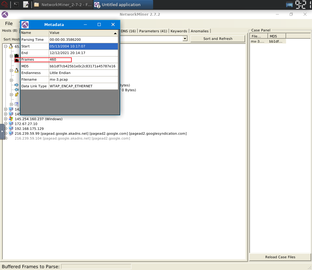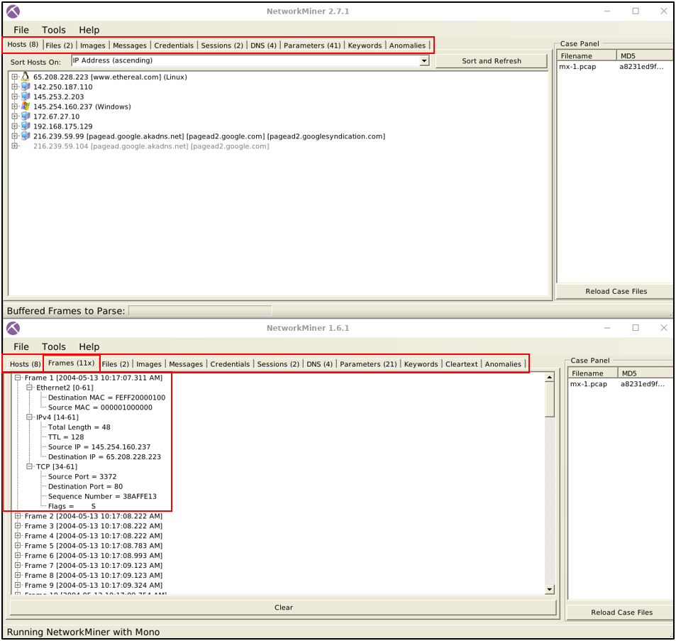 NetworkMiner 1.6 及更早版本支持帧处理。此选项提供帧的数量以及帧的基本信息。1.6 及更高版本不再提供此功能。