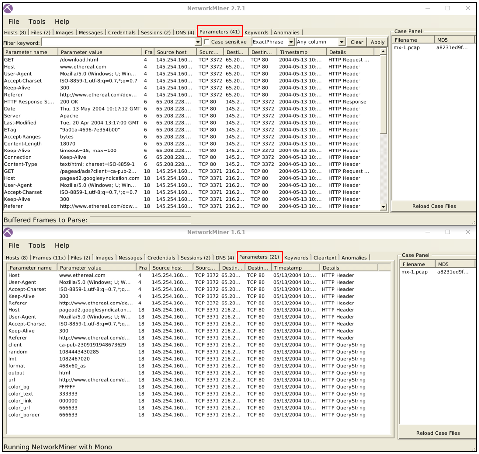 NetworkMiner 2 及更高版本可以处理更全面的参数。因此,1.6.xx 版本支持的参数比 2 版本少。