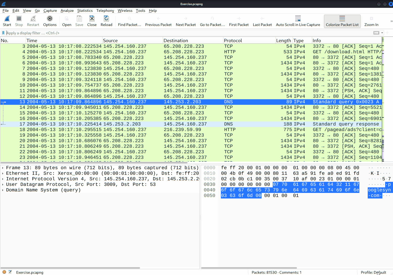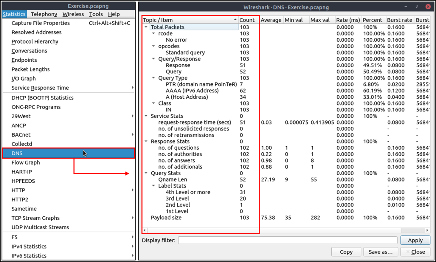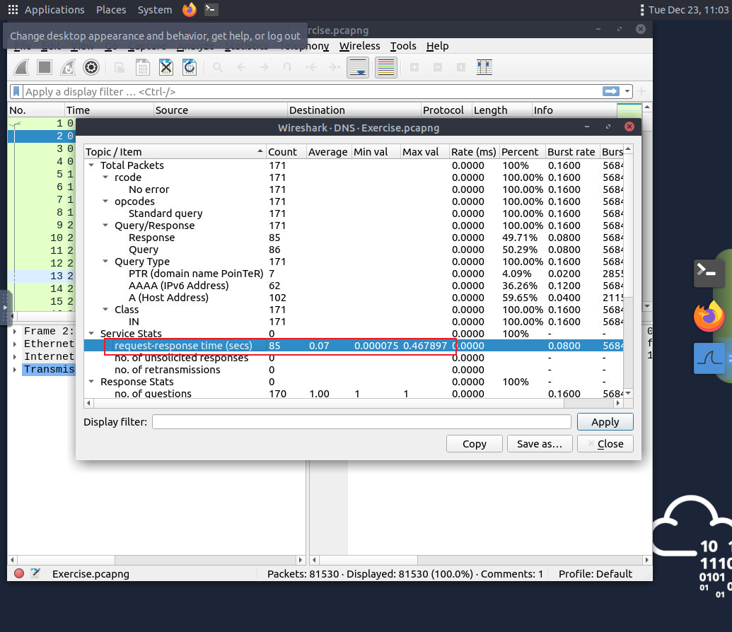 DNS 日志包含的信息仅限于此,因此仅凭这些信息很难得出结论。我们需要更彻底地检查 DNS 流量,并核对 DNS 查询和响应的内容。这将有助于我们确定这些查询和响应的性质。