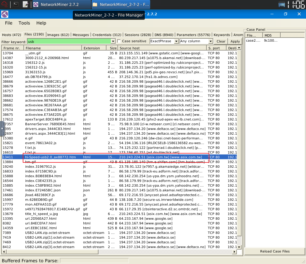 向下浏览结果,我发现一个特别之处。在"文件名"列中,我们看到 hi-Speed-usb2.0_ax99772.htm。我认为这表明它指的是实际的 USB 设备。因此,如果我们向右移动到"源主机"列,可以看到一个域名,这个域名就是 USB 设备的品牌,也是这个问题的答案。找到答案后,将其输入到 TryHackMe 的答案字段中,然后点击提交。