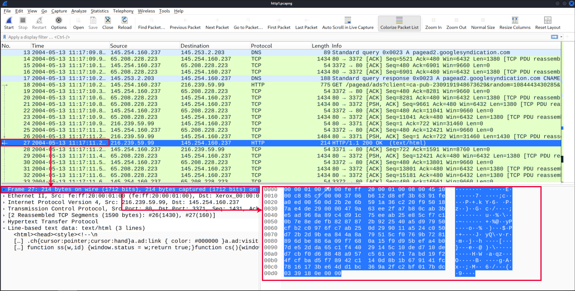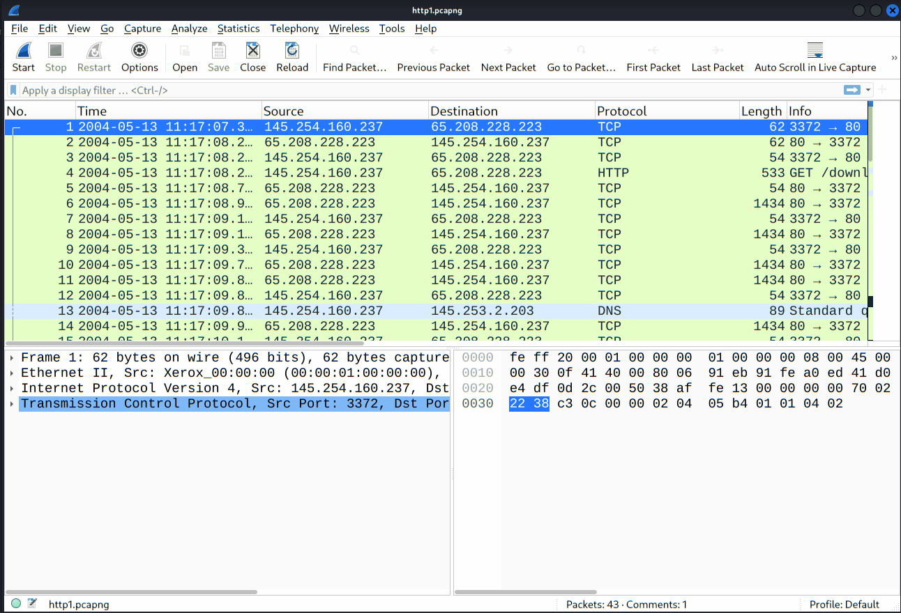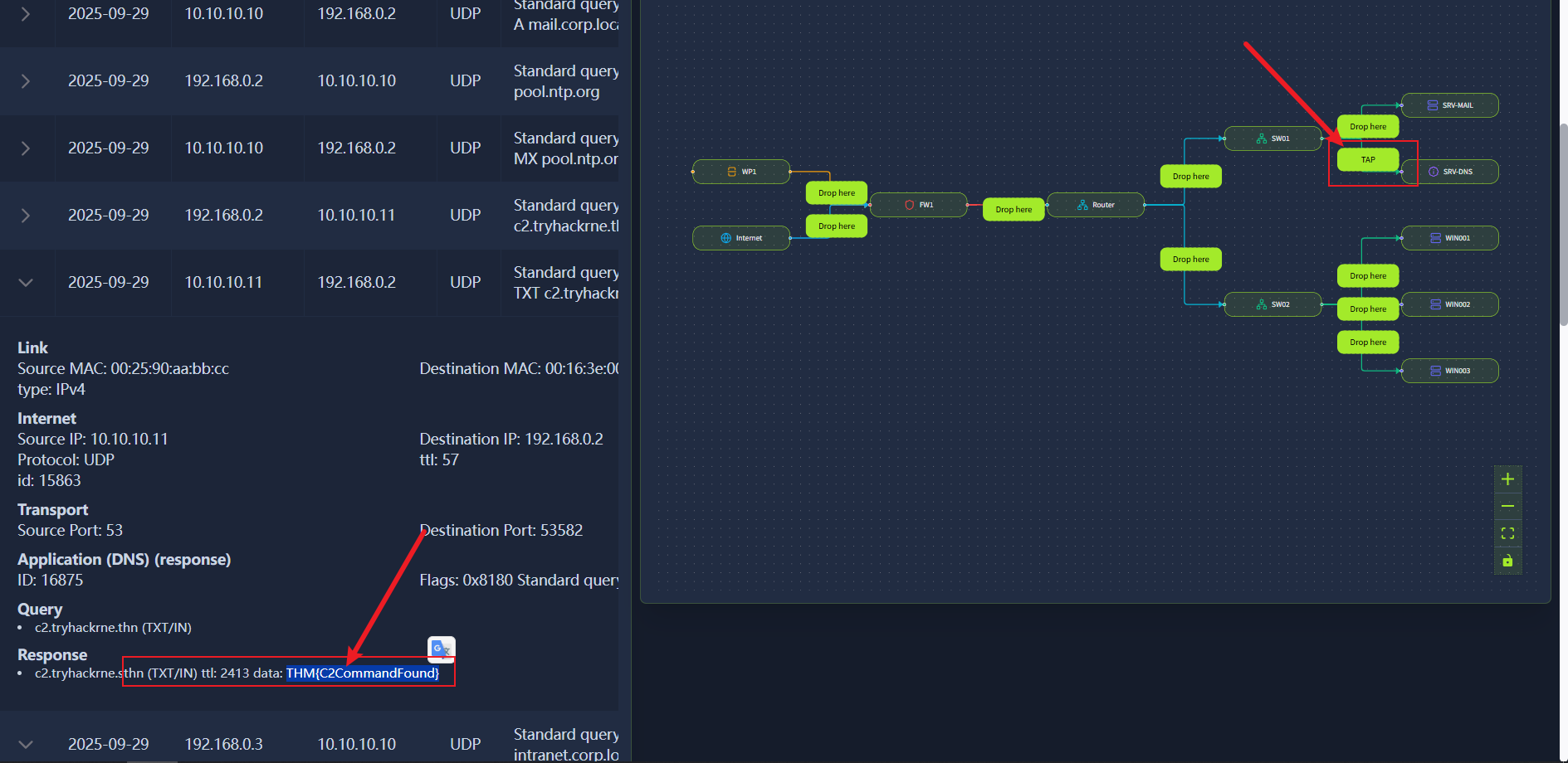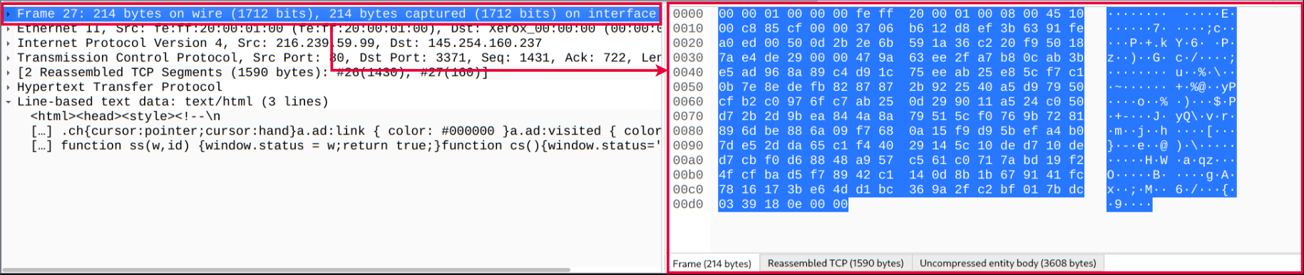 - 检查内部和外部可疑通信的内容。例如,通过DNS进行数据泄露、通过HTTP下载恶意 ZIP 文件、横向移动等。