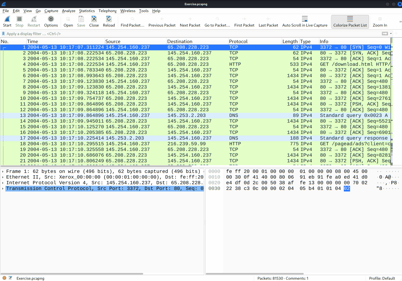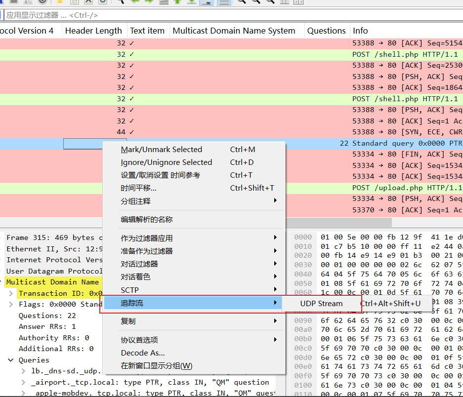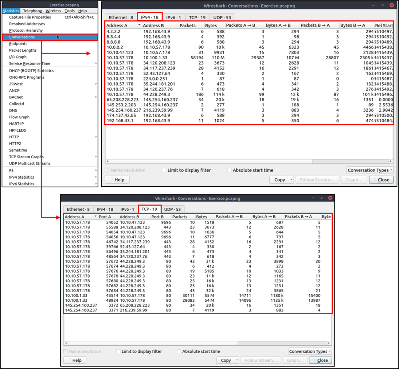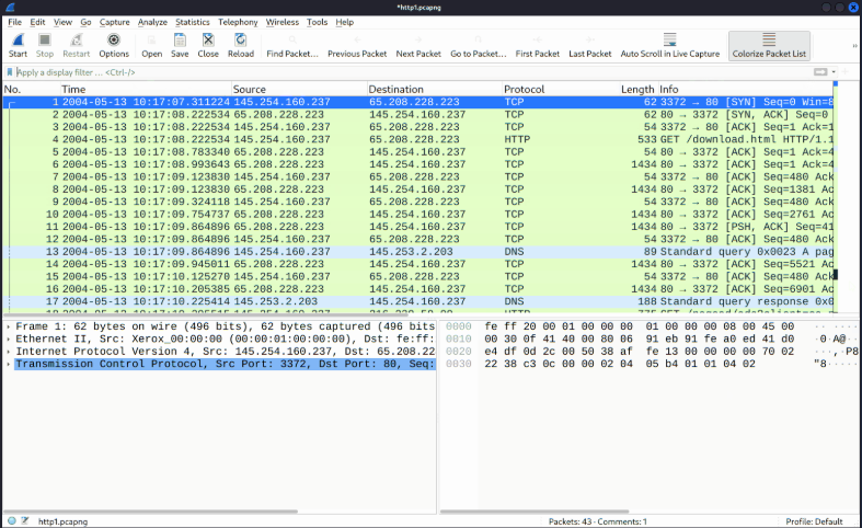 - 检查内部和外部可疑通信的内容。例如,通过DNS进行数据泄露、通过HTTP下载恶意 ZIP 文件、横向移动等。
