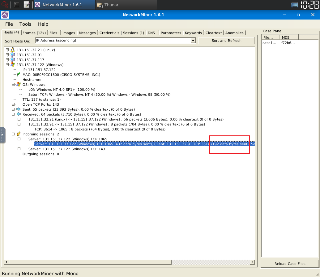 这里问的是1065端口,不能直接看received,邀去看sessions那里看对应的端口字节数,还要看是主机131.151.32.91 向主机 131.151.37.122接收的数据