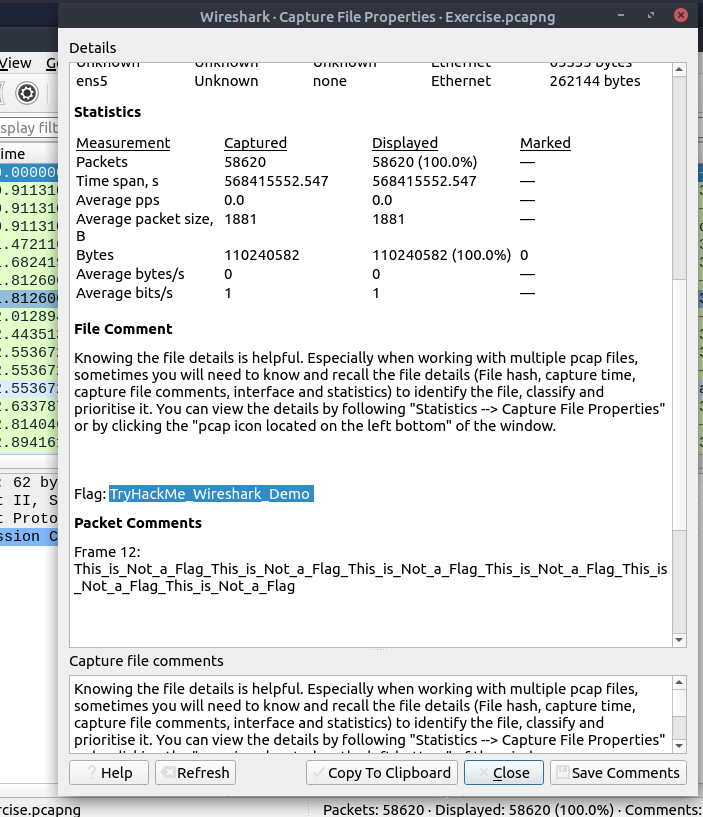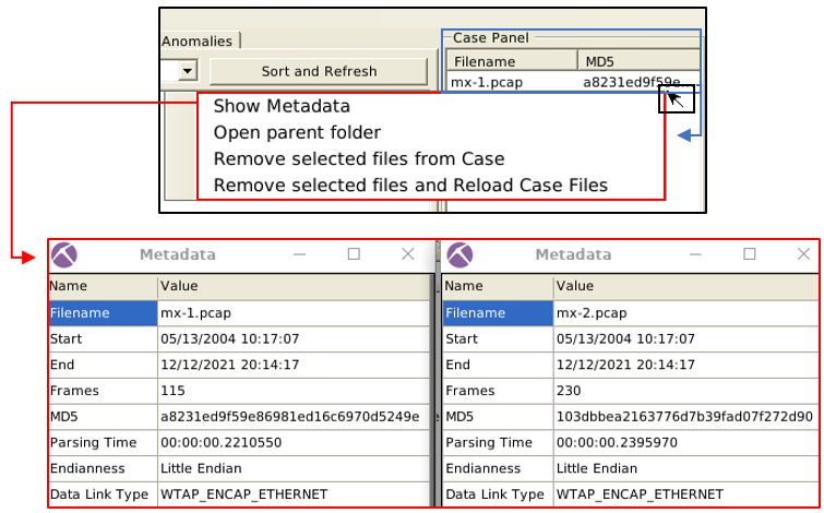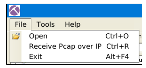 文件菜单显示从所分析的 pcap 文件中提取的参数。本部分提供以下信息: