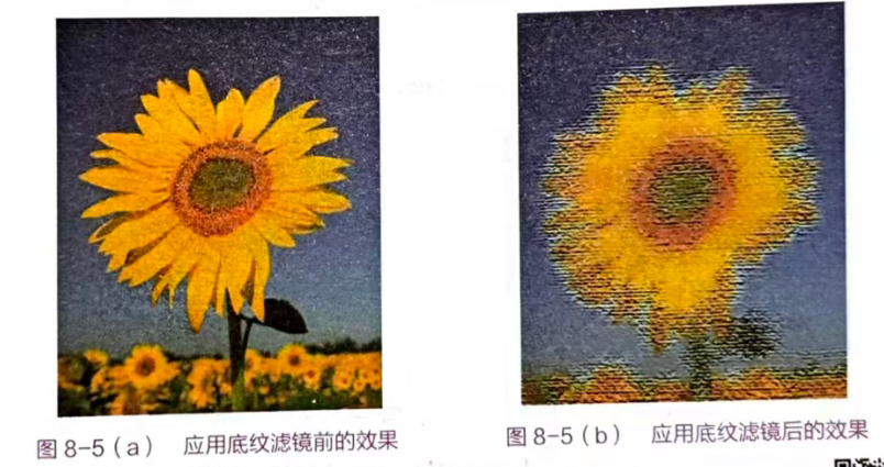 底纹效果滤镜是根据所选择纹理的不同,将纹理与图像融合在一起,产生图像好像是在纹理上直接喷绘的效果。运用底纹滤镜前后的不同效果如图 8-5 所示。