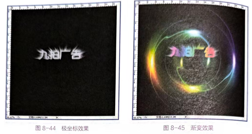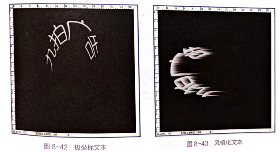 (10)对文字通道选择 "滤镜 --- 扭曲 --- 极坐标" 命令,选择 "极坐标到平面坐标" 选项,效果如图 8-42 所示。