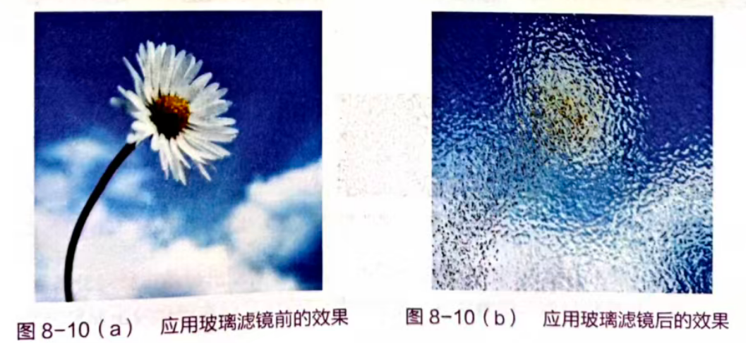 玻璃滤镜通过使选区产生细小的纹理变形,使图像看上去如同隔着玻璃观看一样,此滤镜不能应用于 CMYK 模式和 Lab 模式的图像。运用玻璃滤镜前后的不同效果如图 8-10 所示。