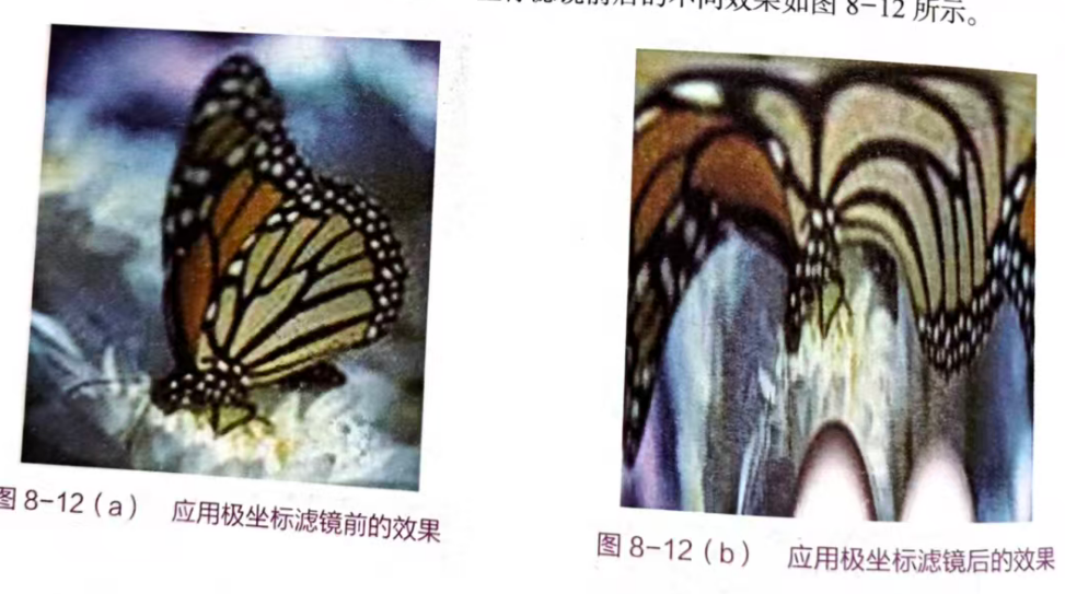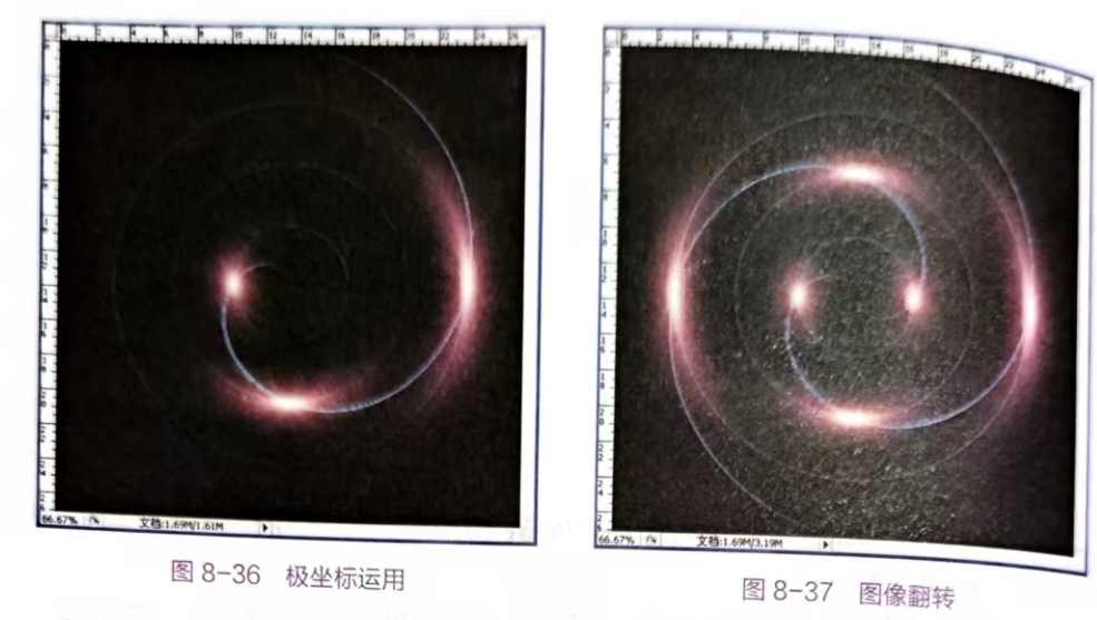 极坐标滤镜可将图像的坐标从平面坐标转换为极坐标或从极坐标转换为平面坐标,来产生不同的变形效果。运用极坐标滤镜前后的不同效果如图 8-12 所示。