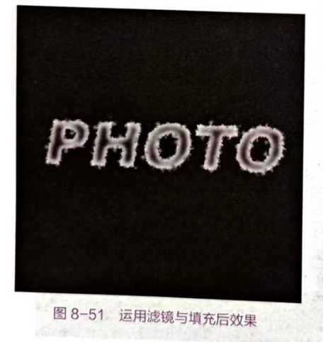 (7)将前景色转化为黑色,在靠近文字的内部边缘,与第六步操作一样,用黑色单击填充。效果如图 8-49 所示。