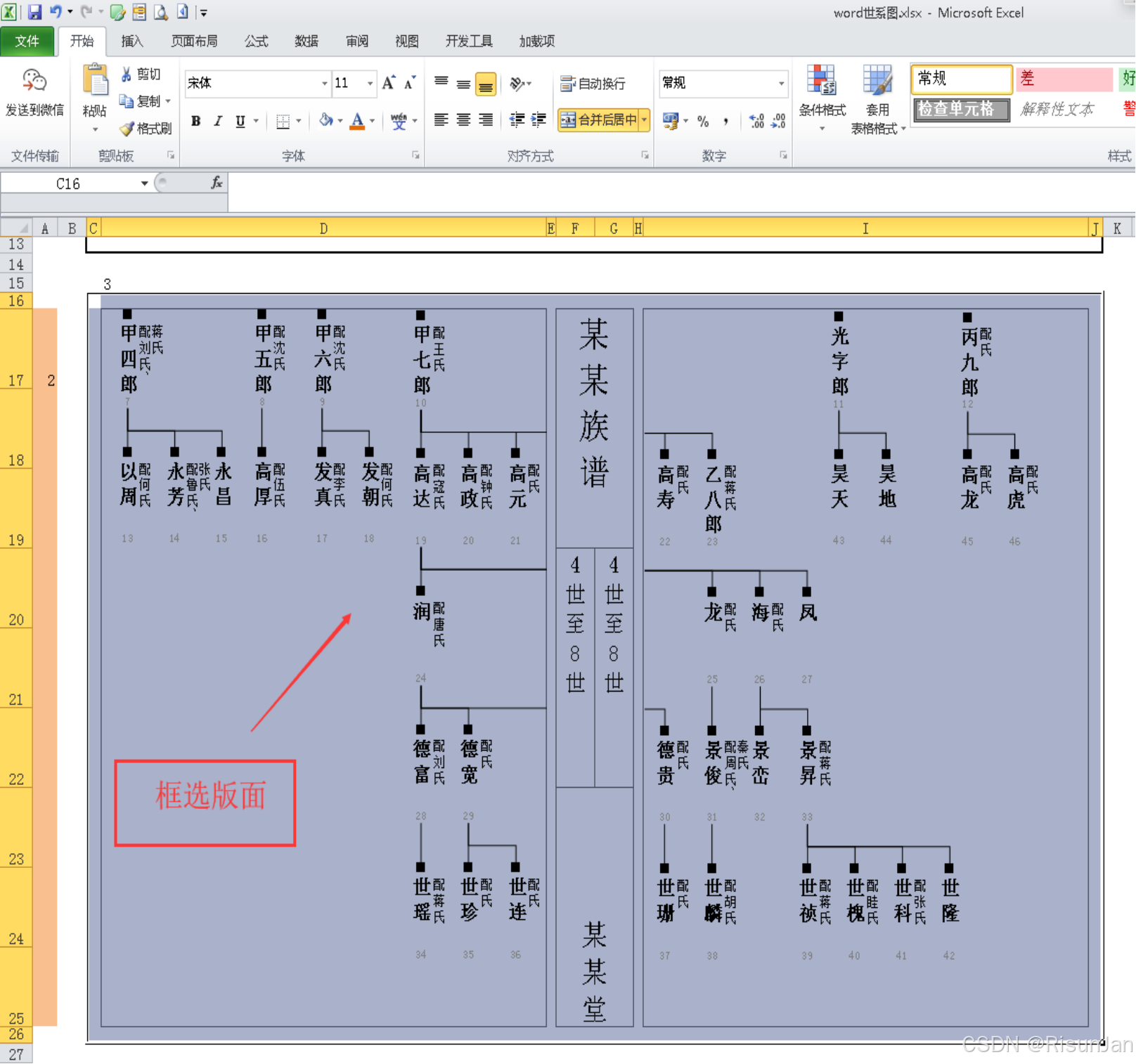 6、这个世系图排版教程一旦学会,一劳永逸,作者评估过速率,一人每天排5000人的世系图不困难。