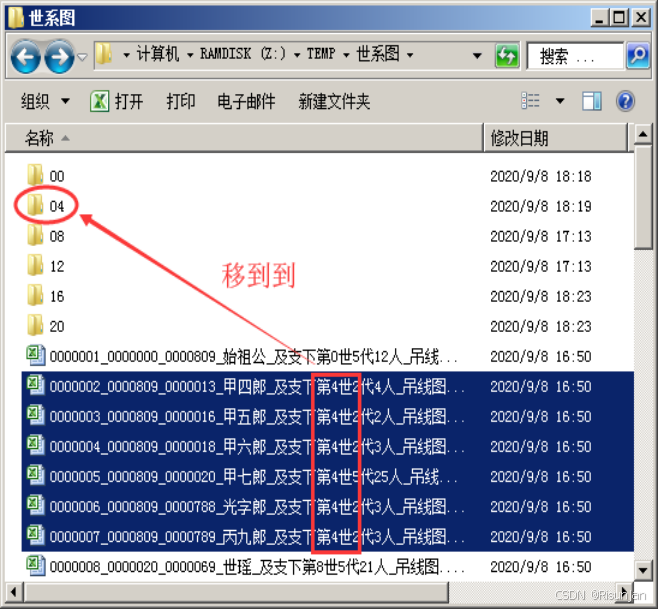 分版导出后,把同起始世代的文件,归类放置到不同文件夹。
