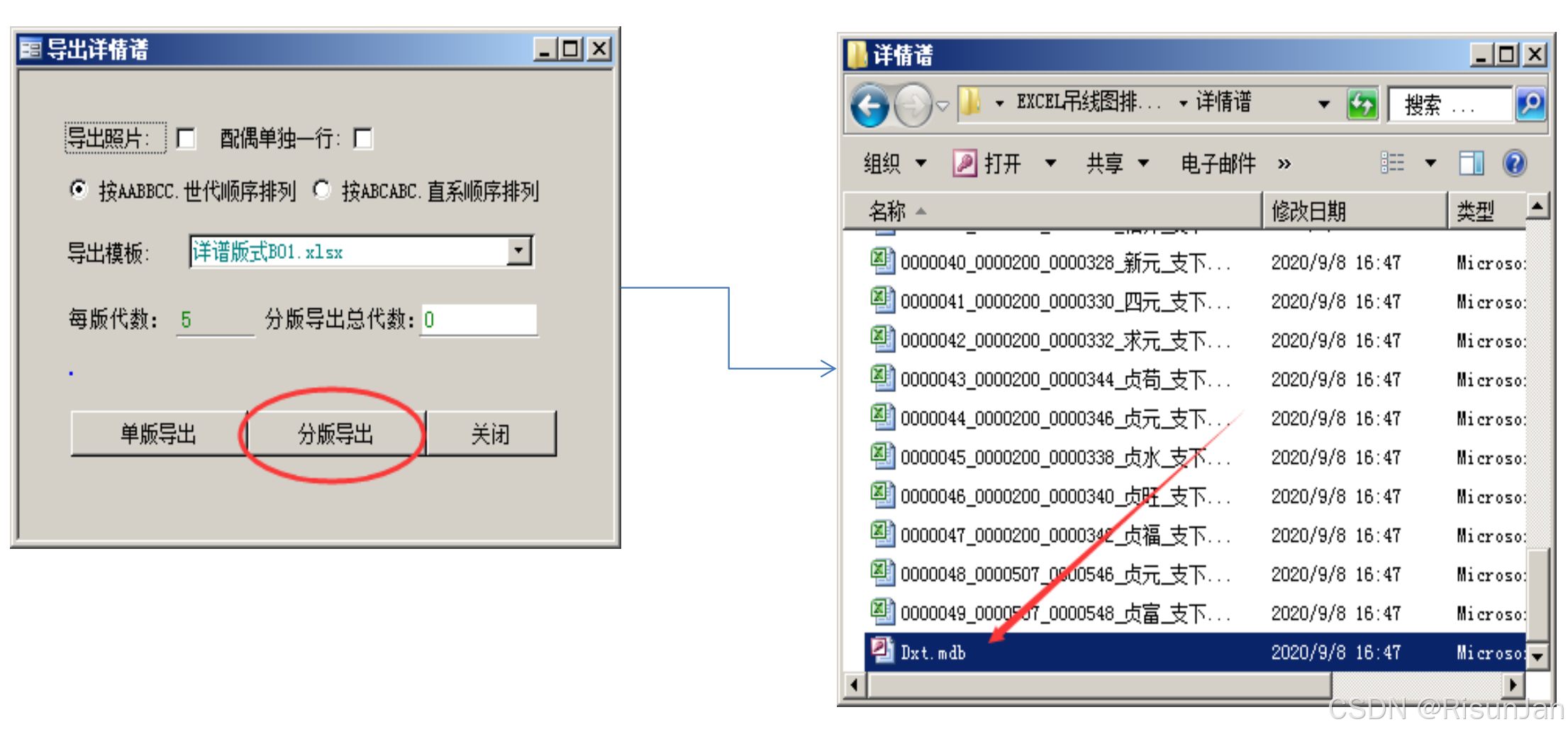 先按生成分版(示例是每版5代)详情谱,获取"Dxt.mdb"索引文件