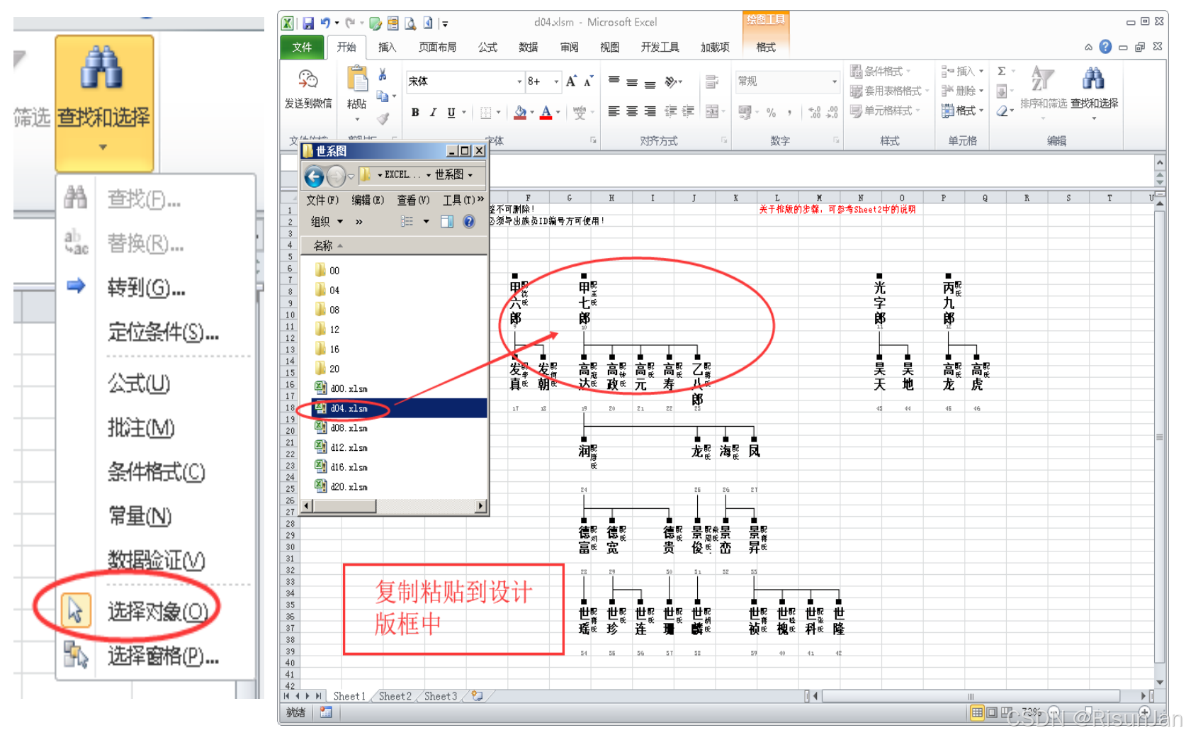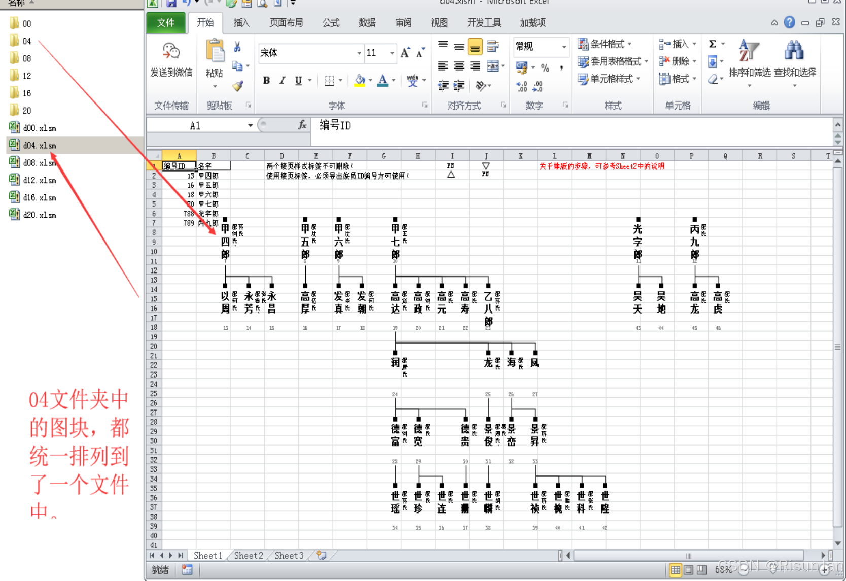 每个世系的图块,都整合到一个xlsm文件中了(参看图7的整合效果)