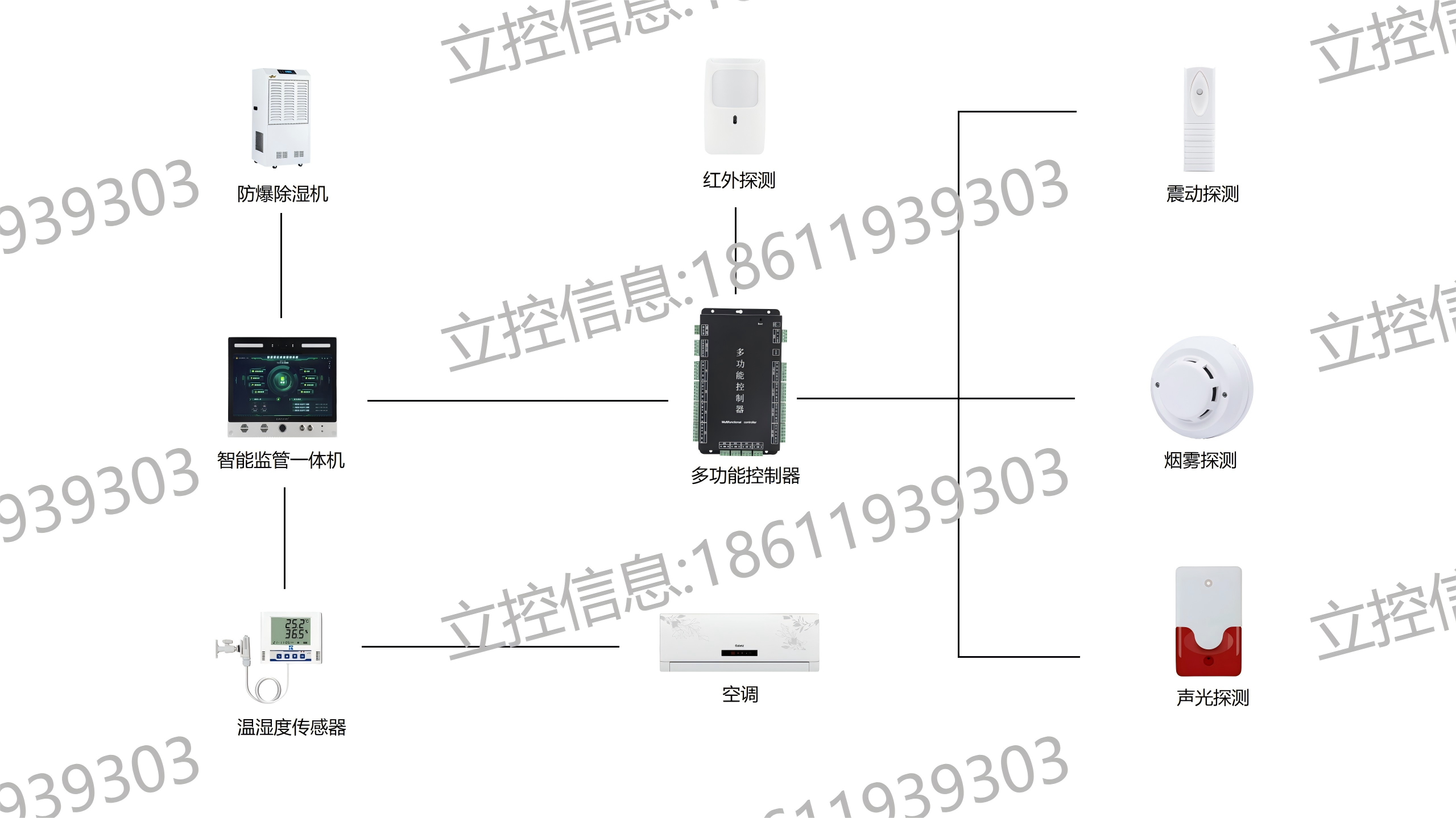 设备的 "物理连接",是智慧管控落地的基础 ------ 第二张图里,指纹人脸门禁机作为核心接入点,串联起温湿度采集终端、智能空调、工业除湿机、防爆灯与防爆风机等设备,实现了 "场景化协同":