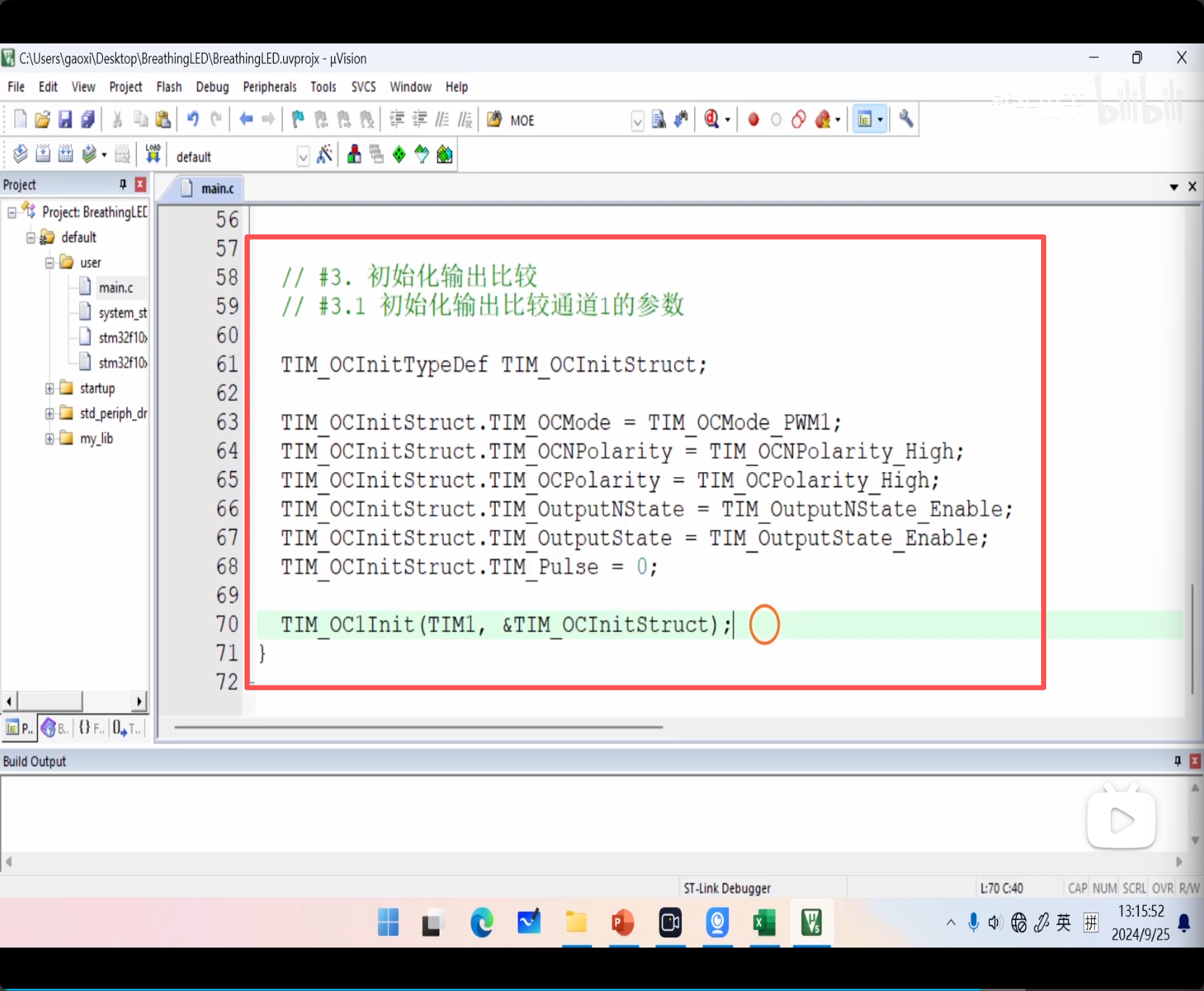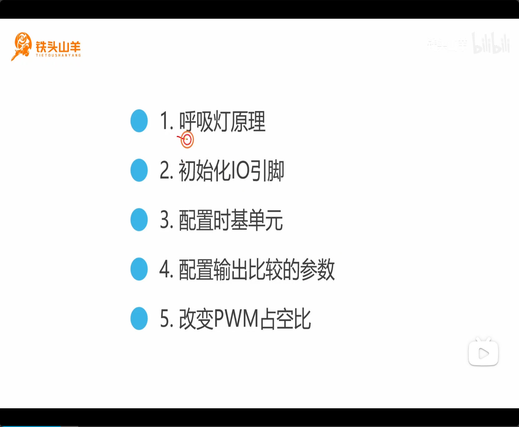 通过 PWM 呼吸灯实现,复习了下输出比较的原理。