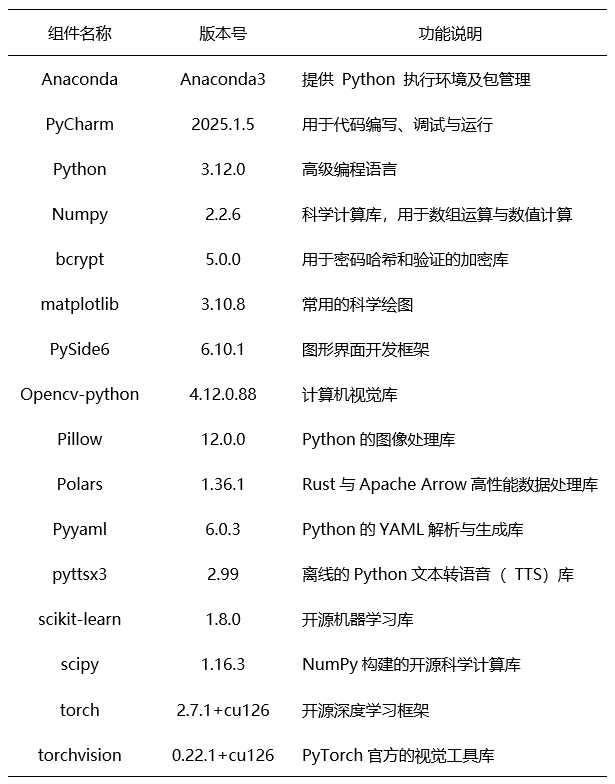 对本实验所需的各类软件及工具的基本信息进行了清晰汇总。