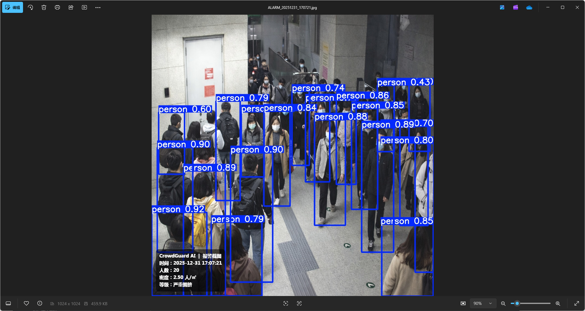 根据客流密度的不同,系统会根据密度值的变化触发不同级别的报警。若密度低于T1,则系统认为区域内情况正常,不会触发任何报警。当密度介于T1和T2之间时,系统会触发低优先级报警,即"拥挤"状态,提醒工作人员注意。若密度大于等于T2,则系统会触发高优先级报警,即"严重拥挤",该状态下系统会采取更加紧急的应对措施。报警方式包括声音报警、语音提示、弹窗提醒、截图保存和日志记录等,以确保相关人员能够及时收到并响应报警。