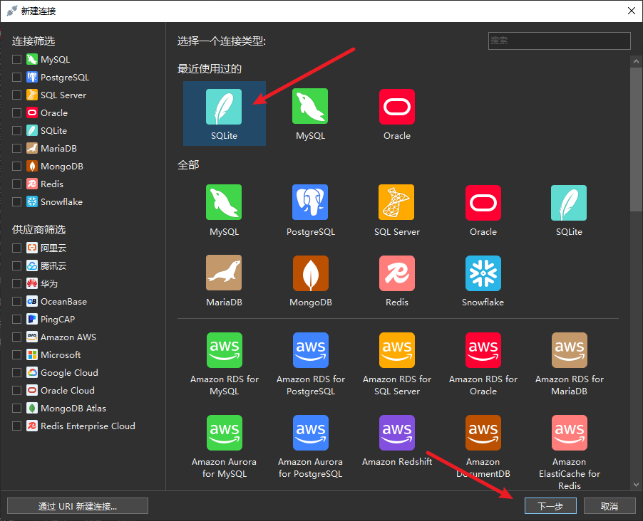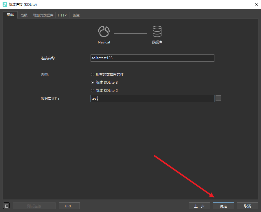 - 连接->SQLite