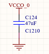 这张原理图显示的是 FPGA 的 VCCO_0 (Bank 0 的 I/O 电压)电源引脚上的一个电容 C124 (47uF, 1210封装) 。选用 47uF 这么大容量的电容,主要有以下几个核心原因: