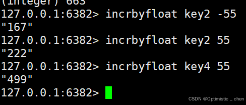 作用:将key对应的string表⽰的浮点数加上对应的值。如果对应的值是负数,则视为减去对应的值。