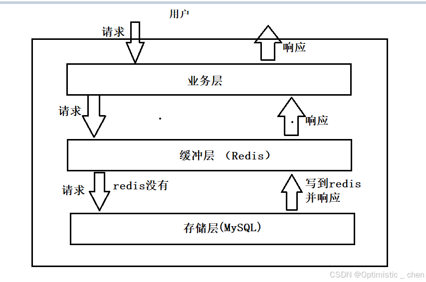 大部分场景下,Redis作为缓冲层,MySQL作为存储层,绝大部分数据都是从redis中获取,因为redis具有支撑高并发的特性,降低MySQL的压力。