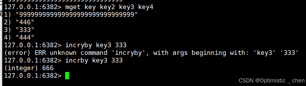INCRBY的作用:将key对应的string表示的数字加上对应的值