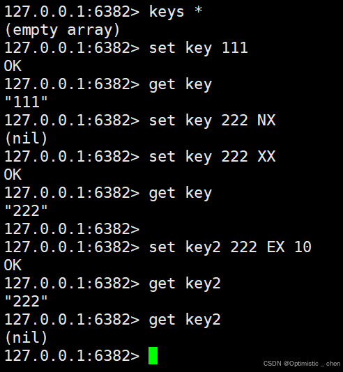 - EX seconds:使用秒作为单位设置key的过期时间
