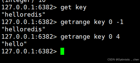 作用:返回key对应的string的⼦串,由start和end确定(左闭右闭); 可以使⽤负数表⽰倒数。-1代表倒数第⼀个字符