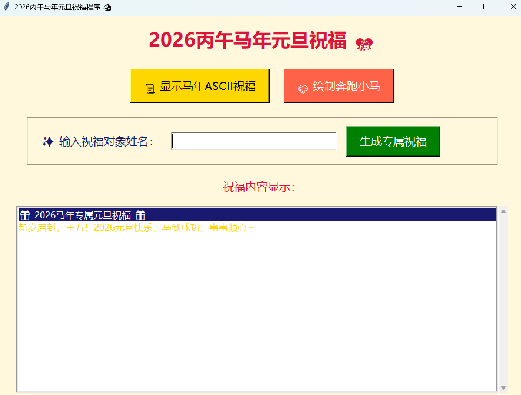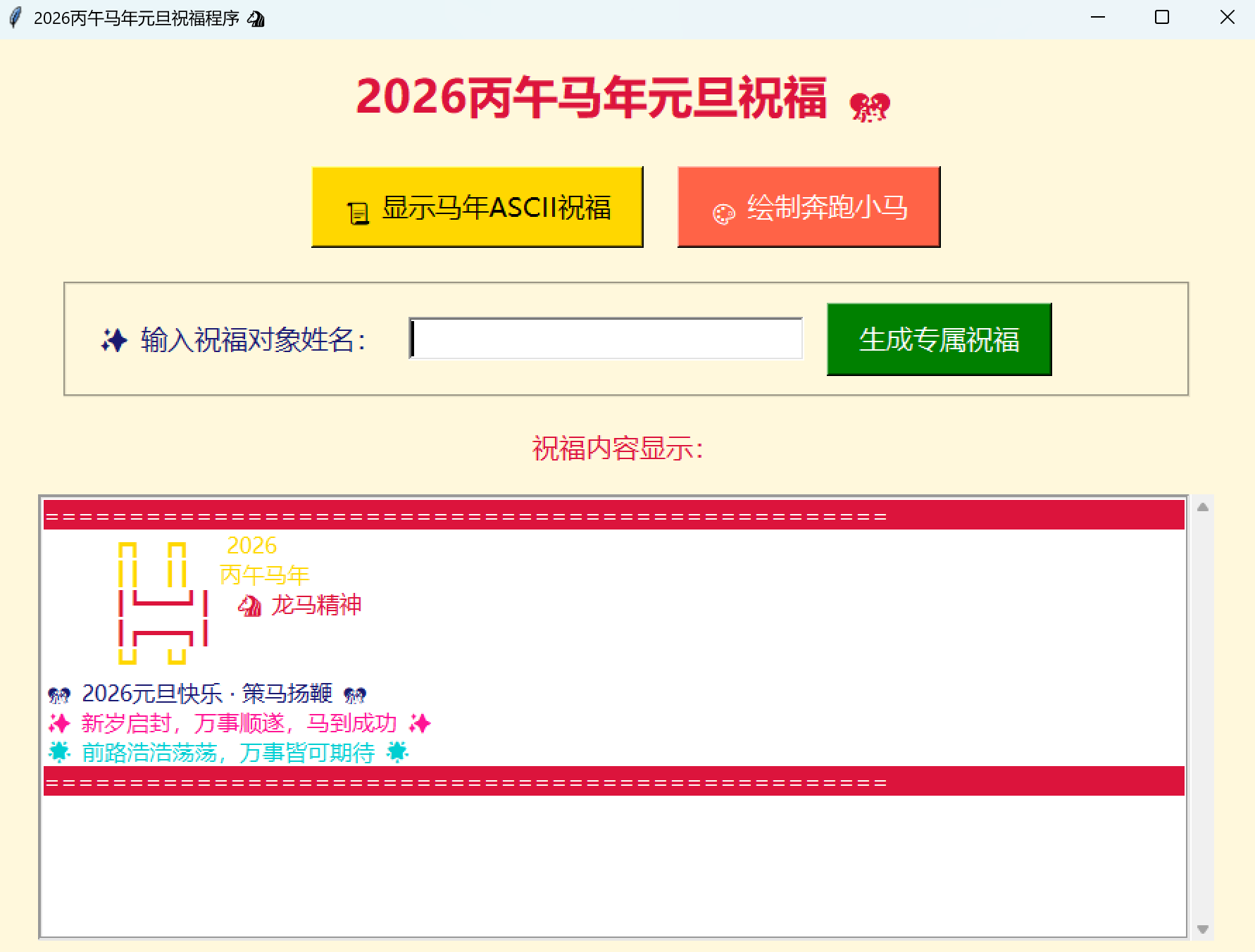 root_gui.title("2026丙午马年元旦祝福程序 🐴")