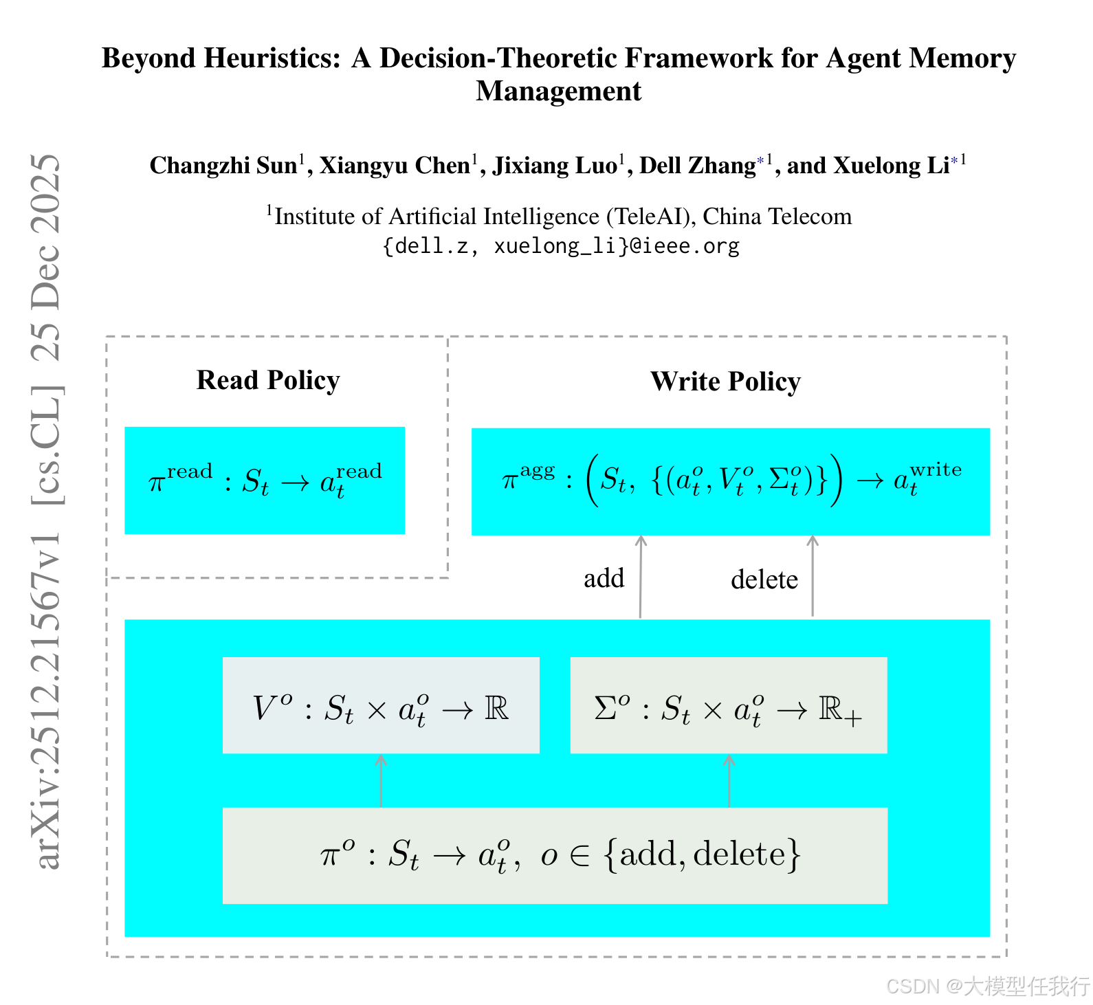 🔸在写入机制中,独立的子策略提出候选记忆操作,并使用显式的价值函数和不确定性估计来评估这些操作的预期长期效益和相关风险。